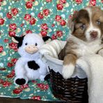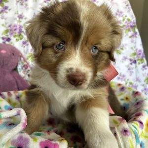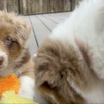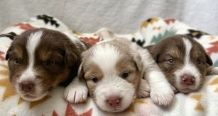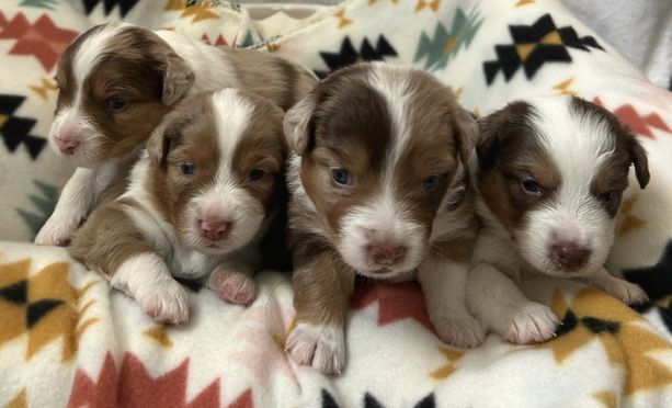 Our puppies include red merle and red tri-color. Colors will vary depending on the parent dogs.