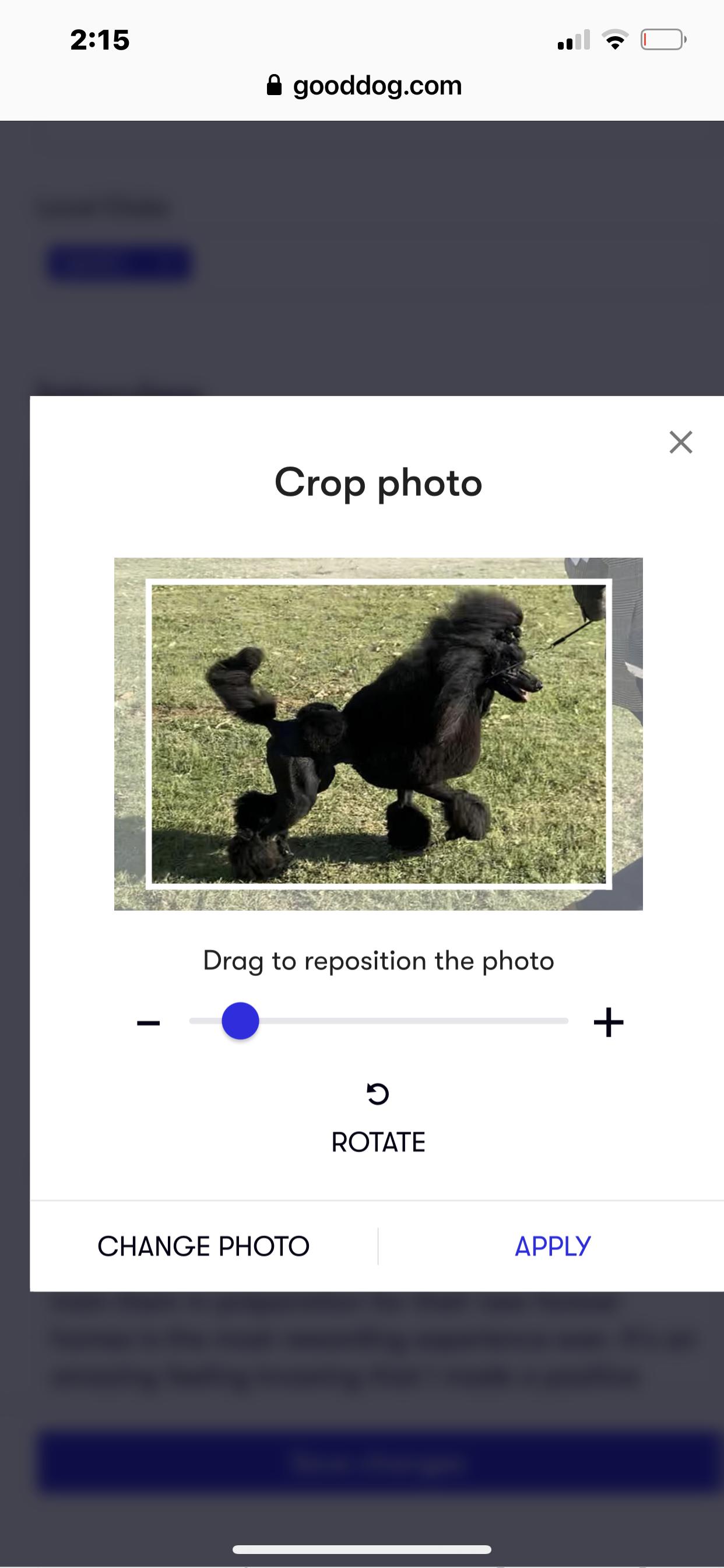 Jolie is a female Poodle. Carefully selected as a great representative of her breed, Jillian decided to make her part of their program. Jillian has passed Good Dog’s screening process, which involved a review of their breeding practices, environment, and the mental and physical health of their dogs.