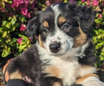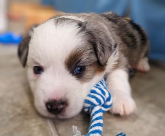 Our puppies include blue merle, black tri, red tri, and red merle. Colors will vary depending on the parent dogs.