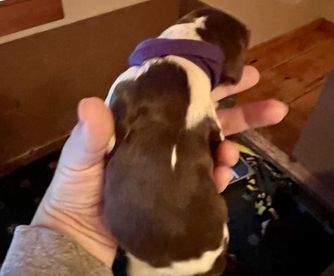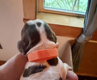 Anise is a gorgeous liver and white with heavy ticking throughout. She is imported from Poland champion lines. She is health checked. If you want to know more, feel free to ask!