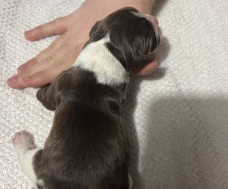 Charlie is absolutely amazing! He is health checked and from champion American lines. He is liver and white tri. If you want to know more, feel free to ask!