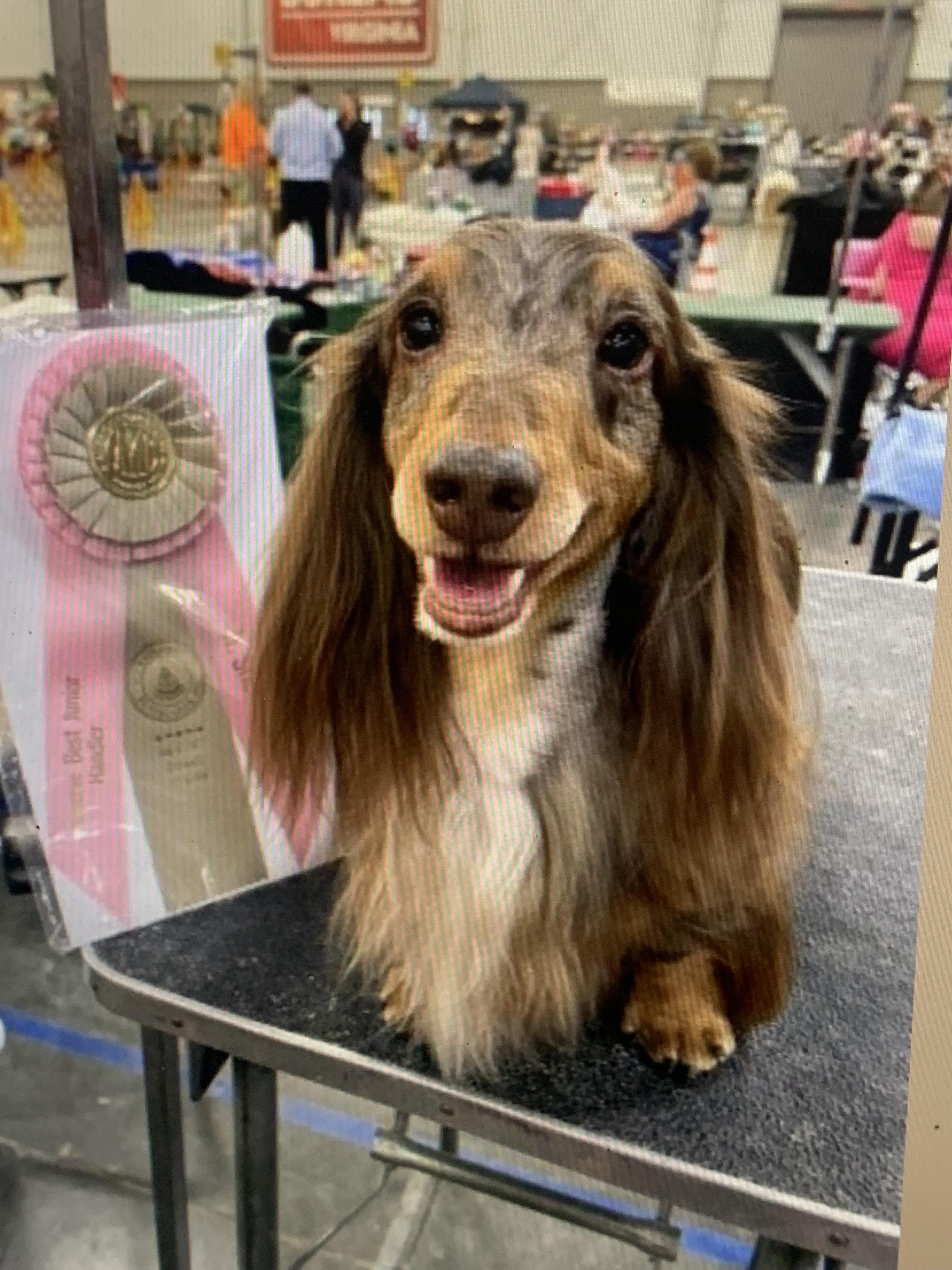 bob is a male Dachshund. Carefully selected as a great representative of his breed, Anne decided to make him part of their program. Anne has passed Good Dog’s screening process, which involved a review of their breeding practices, environment, and the mental and physical health of their dogs.