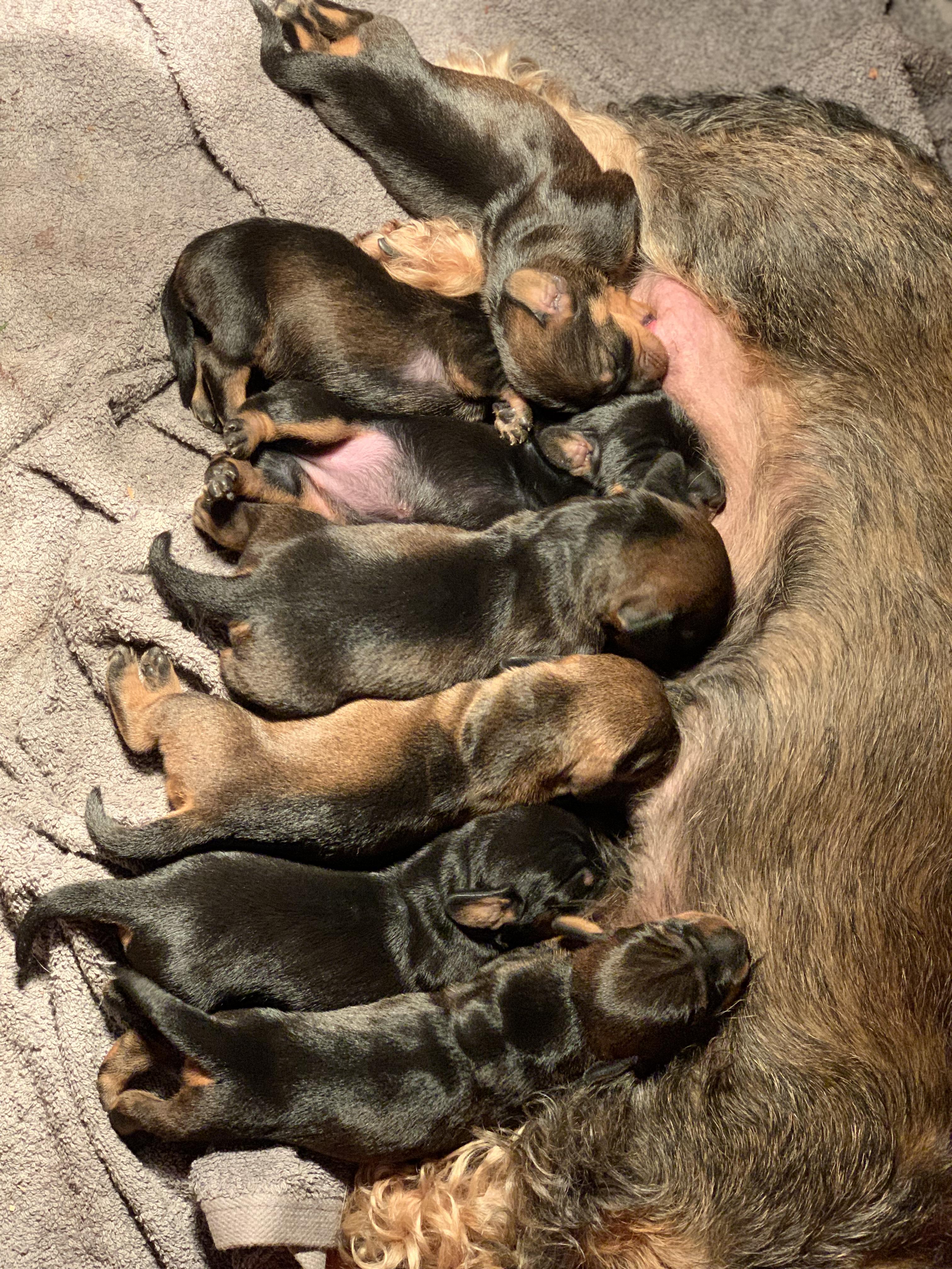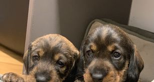 Our puppies include wirehaired and longhaired coat varieties. Coat types may vary depending on the parent dogs.