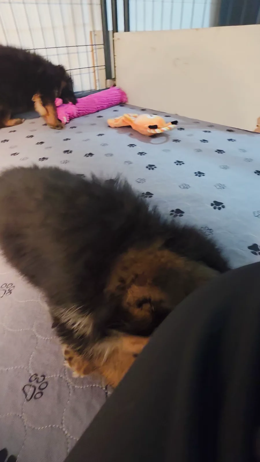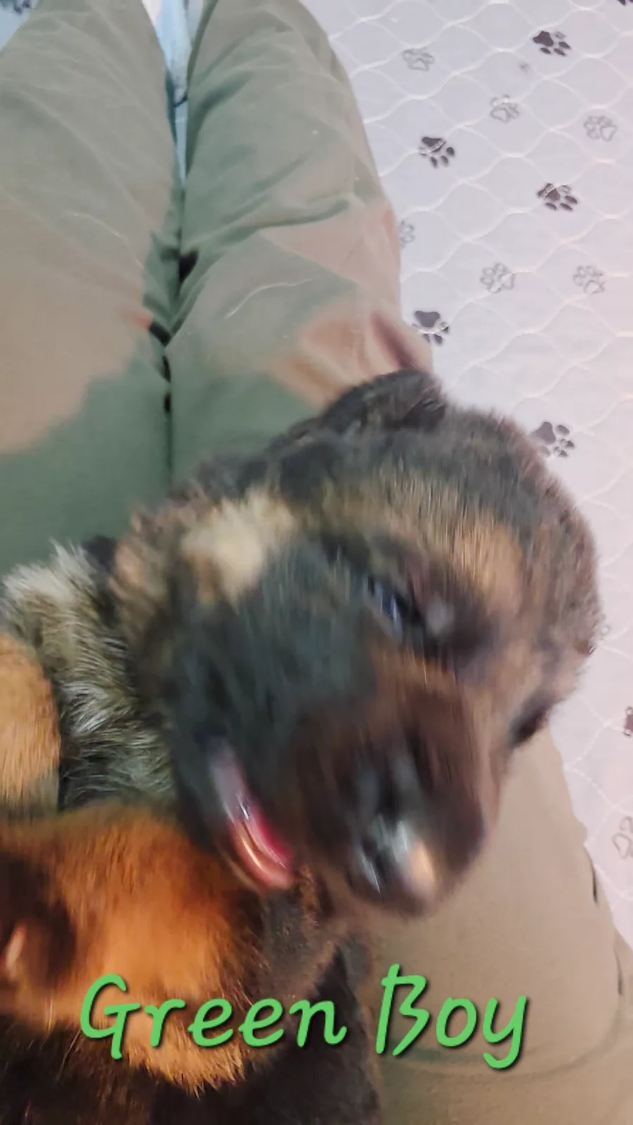 💚 Green Boy 💚 – 5 Weeks Old (Tabby x Ares) This boy continues to impress us more every day. One of the sweetest things he’s started doing is reaching out with his right paw to make contact, trying to connect and interact intentionally. It’s a small detail, but it says a lot about his awareness and desire to engage with people. Toward the end of the video you’ll see him bounce into a series of little jumping pounces (very much giving Tigger vibes 🐾) — a great example of his playful spirit and developing coordination. What we’re really seeing come through at this stage: • Strong human focus and engagement • Confident, curious approach to interaction • Playful drive without being over the top • Nice balance of affection and independence He’s thoughtful in how he interacts, but still very much a happy, playful puppy. This is the kind of temperament we aim for, engaged, people-oriented, and naturally interactive.