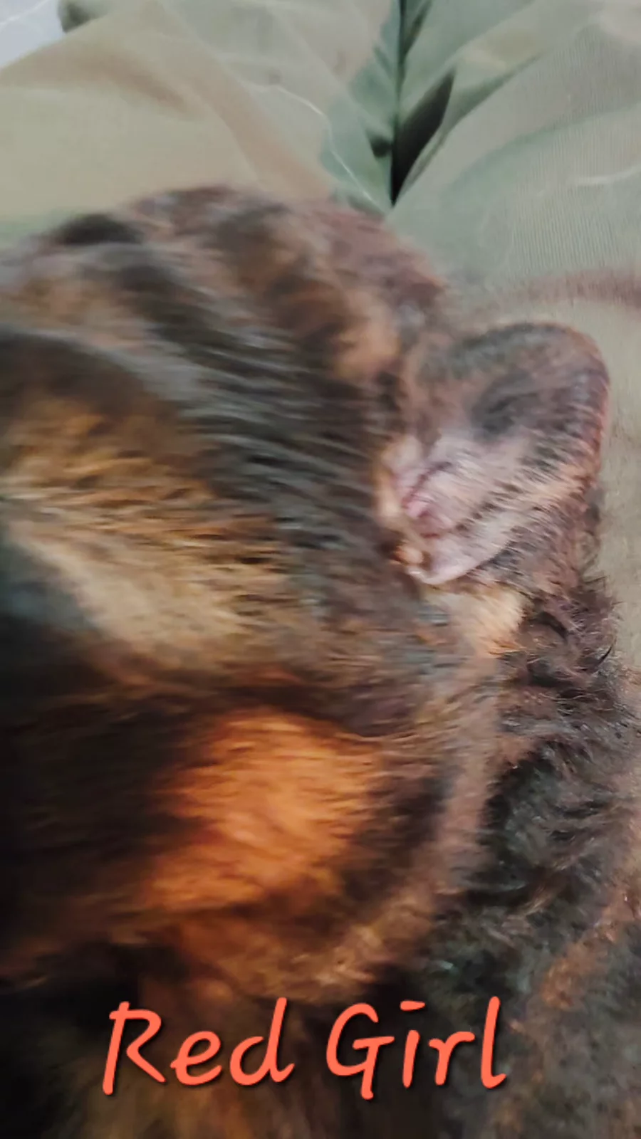 Red Girl — 2 Weeks Old 🎥 Watch how she responds when her belly is rubbed. Her back paws gently paddle — a healthy neurological reflex and good sensory response without overstimulation. She briefly mouths her own paws as well, already beginning early oral exploration and coordination. Notice the fur already coming in between the pads of her back feet — her long coat is making itself known even at this age. She adjusts easily when repositioned and settles quickly, showing soft body tone and calm regulation. Quiet, composed, and developing beautifully. (Tabby/Ares)