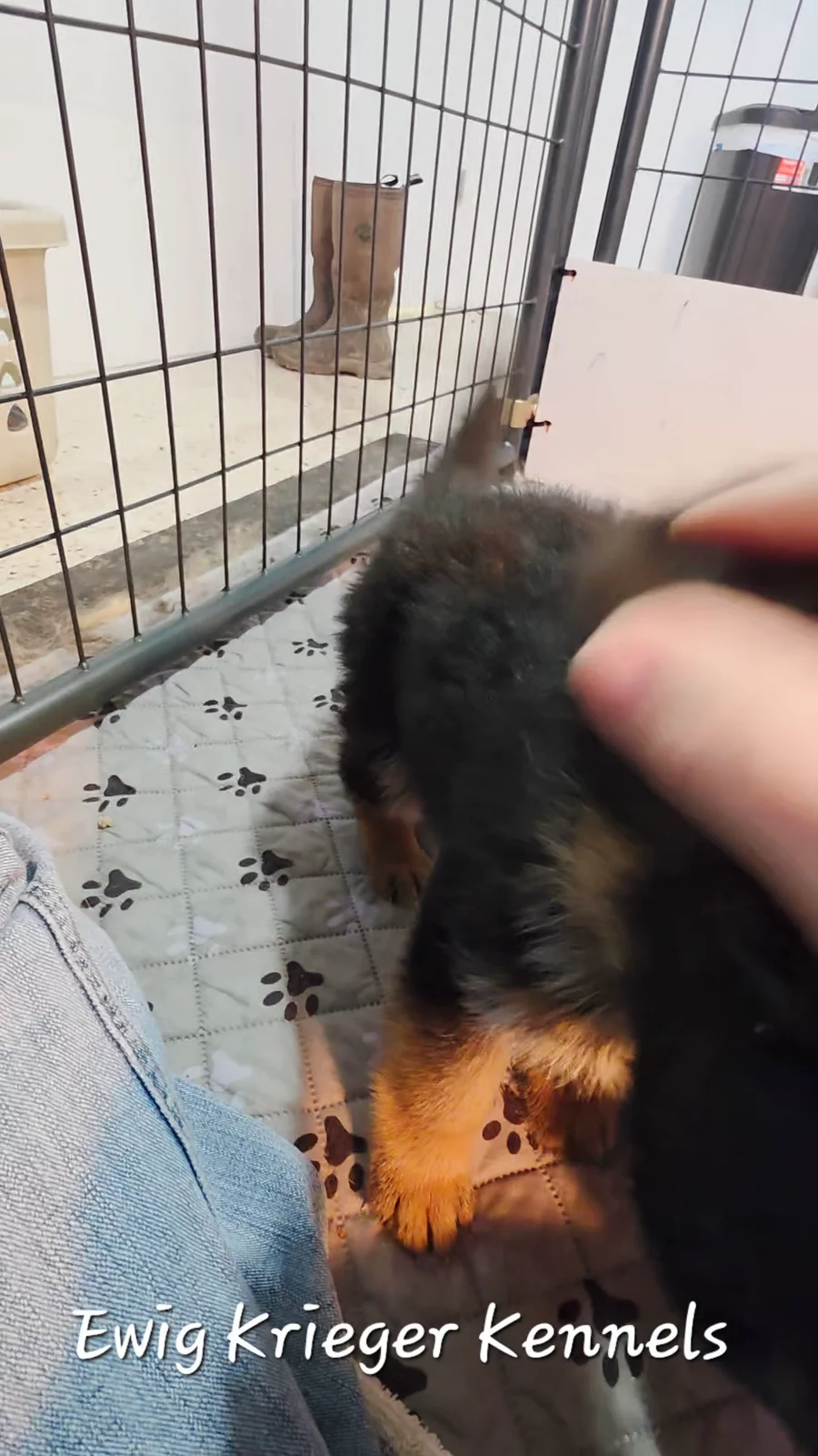 I’m not sure people realize how difficult it is to find a good breeder. We feel really lucky to have discovered Bonnie & Bill's Ewig Krieger Kennels. We wanted a healthy and confident puppy with the black and red/tan coloring. It was a bonus that they breed for the temperament for service work. They answered our many questions and responded in a timely manner. We could really tell they care about their dogs and breeding responsibly. They let us meet all their dogs and were open to us coming back to visit any time. After only a couple days we can tell he is a smart one and will be a joy. I'm pretty sure we will be heading back to Ewig Krieger in a couple years to pick out a sister for our Monty.