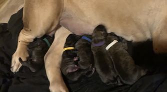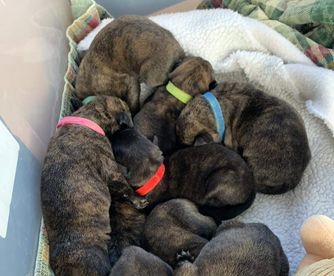 Our puppies include fawn and brindle. Colors will vary depending on the parent dogs.