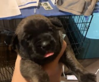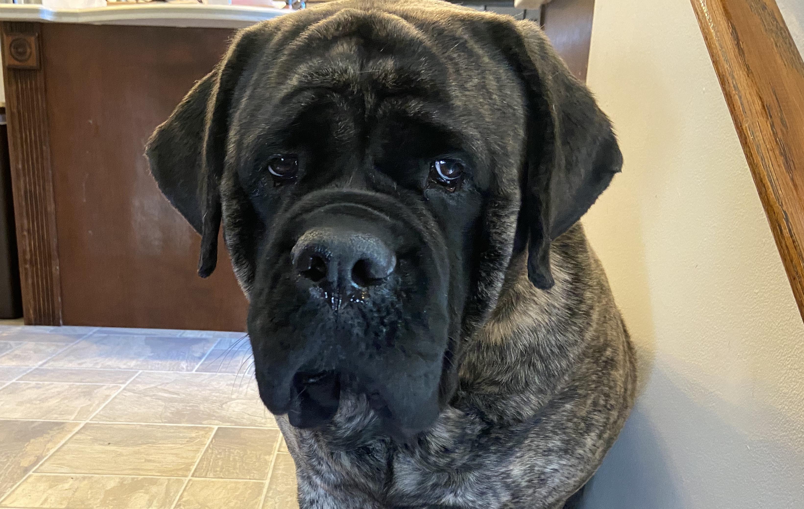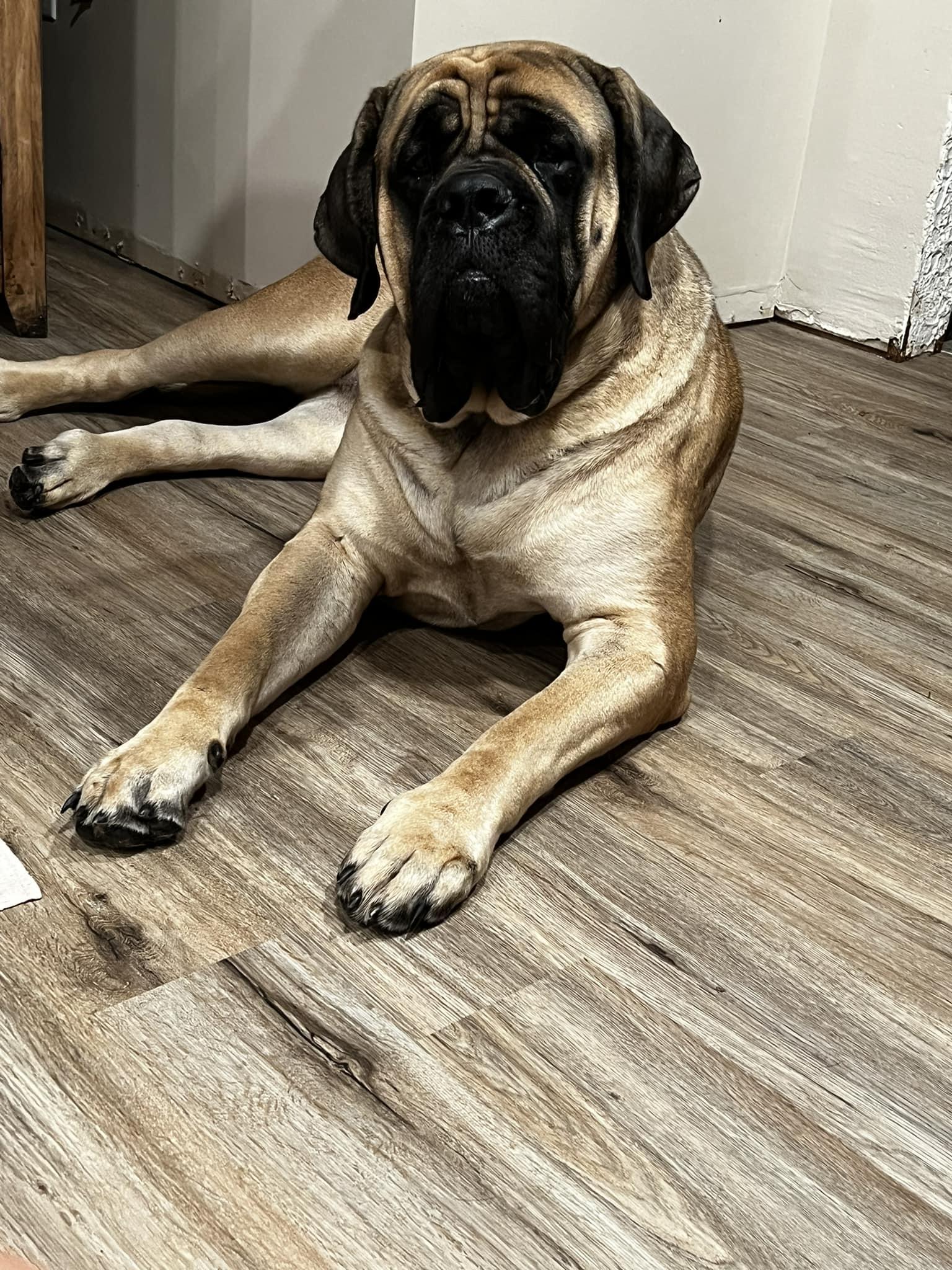 Veruca is a female Mastiff. Carefully selected as a great representative of her breed, Heather decided to make her part of their program. Heather has passed Good Dog’s screening process, which involved a review of their breeding practices, environment, and the mental and physical health of their dogs.