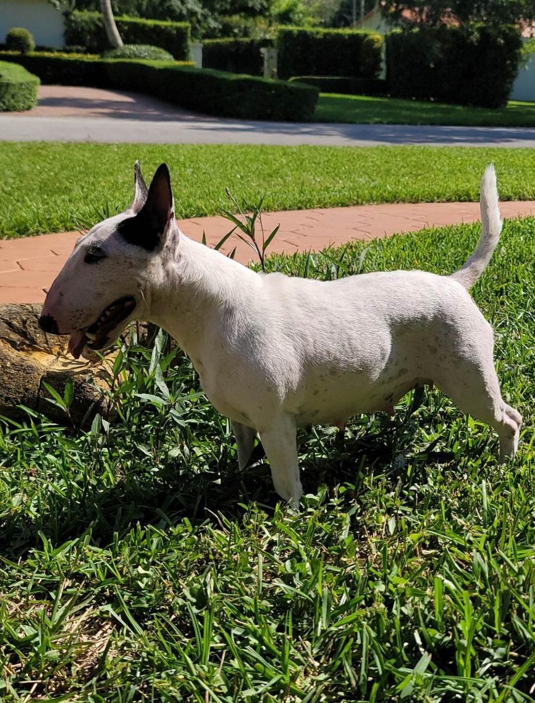 Coca is a female Miniature Bull Terrier. Carefully selected as a great representative of her breed, Alex decided to make her part of their program. Alex has passed Good Dog’s screening process, which involved a review of their breeding practices, environment, and the mental and physical health of their dogs.