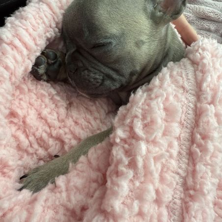 Another sweet baby went to her forever home this weekend...and her mom sent me this photo of her SO cozy and loved so much already! She went to a home with 3 other Frenchies and an amazing family so I know she will be very well taken care of 🥰