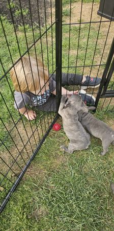 All of our puppies love our kids just as much as our kiddos love them! They tolerate toddler hood SO well and adore our older sons snuggles ❤️ I love knowing our babies are well rounded when it comes to different noises, people, and animals! I am so proud of these babies and how perfect they are with everyone!