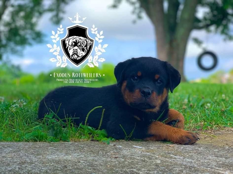 I'm Savanah R., the breeder behind Exodus Rottweilers located in Talbott, TN. We breed top-quality Rottweilers that can excel in work, pet, and competition homes. We breed strictly to the standard, and we also prioritize health and temperament. Dogs from our program can excel in a variety of fields, including protection, agility, show, and as service animals - and all of our pups make wonderful and loving companions. We work hard to prepare each puppy for it's future role.