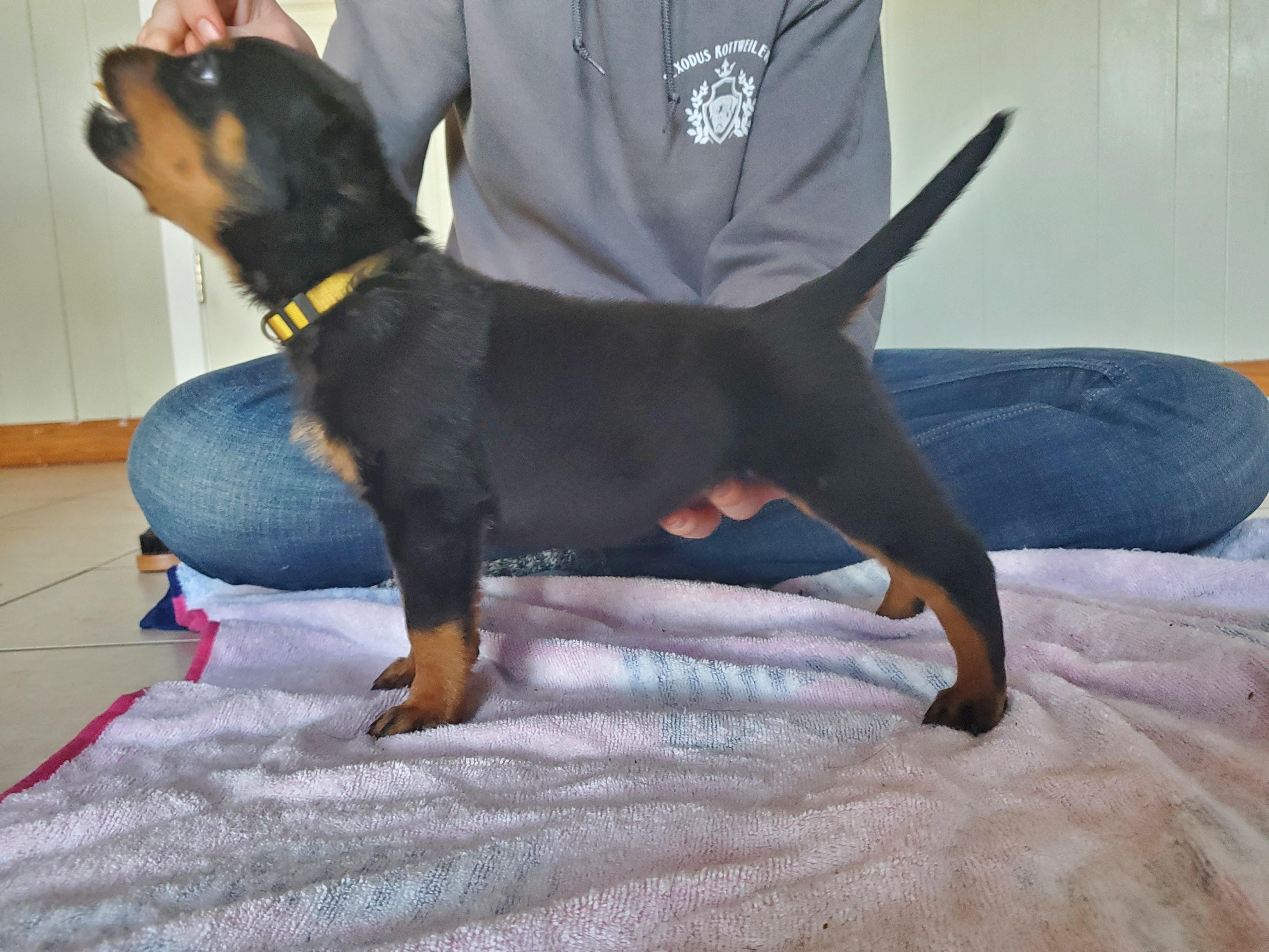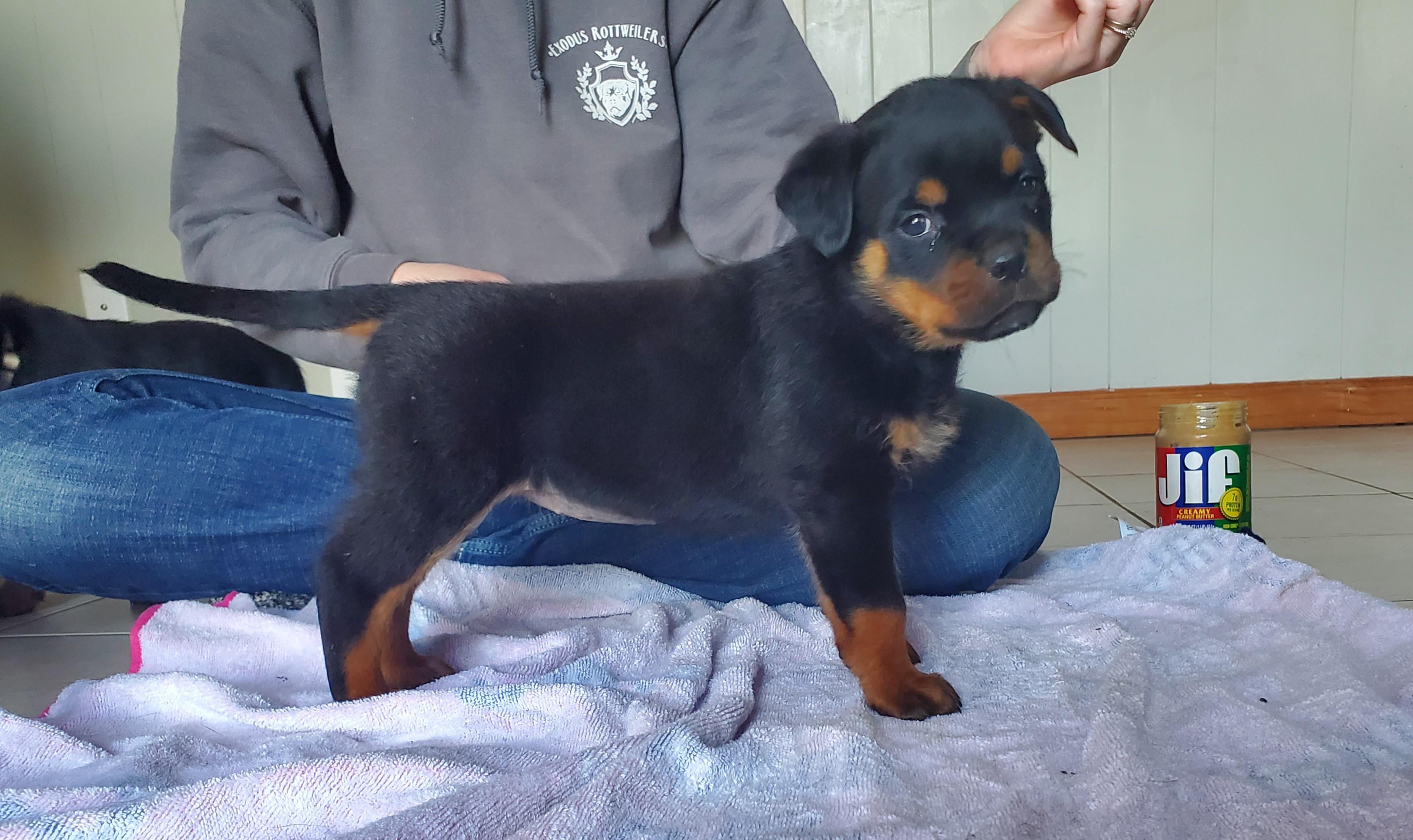 Doxa is a female Rottweiler. Carefully selected as a great representative of her breed, Savanah decided to make her part of their program. Savanah has passed Good Dog’s screening process, which involved a review of their breeding practices, environment, and the mental and physical health of their dogs.