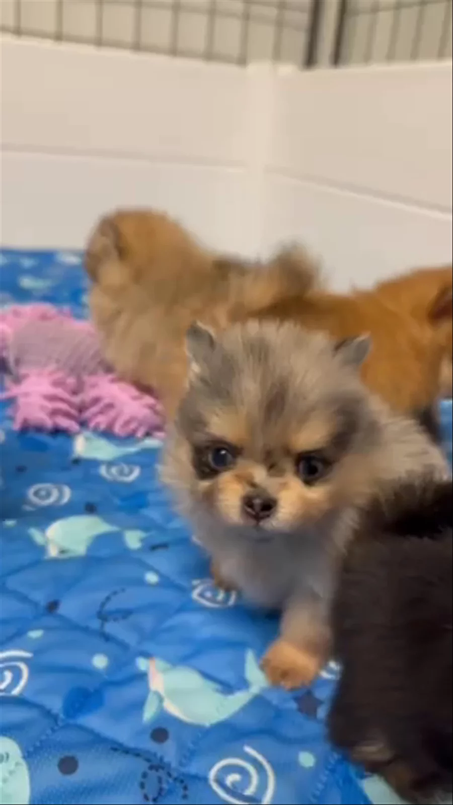 Pepper is a very sweet Merle Pomeranian! She is a cuddle bug! She is 7 lbs . Tons of beautiful fur!