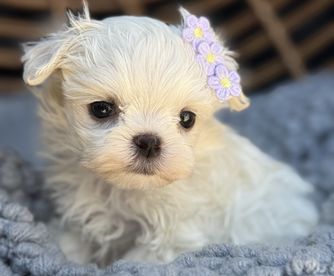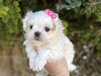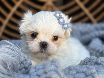 Our Chihuahua puppies include merle, black, chocolate, cream, blue, chocolate blue, cream and white, chocolate and white, chocolate and tan, blue merle, blue and tan, and black and tan. Maltese puppies are white. Pomeranian puppies include red, orange, cream, black, blue, white, chocolate, orange sable, black and tan, chocolate merle, blue merle, chocolate sable, beaver sable, chocolate and tan, and beaver. Colors will vary depending on the parent dogs.
