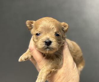 Ruby is a beautiful deep red poodle! She is the sweetest girl! She is 5 lbs ! She came from Korea so is the best quality little poodle! We just adore her! She is very sweet and calm!