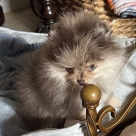 I cannot say enough good things about Melissa. I drove from Tempe, Az. and got one of her beautiful little male Poms. He is everything she described and much more. When I had a question she always answered her phone as was there with all the answers. My little Boo, is so very precious, I took him to the vet the next day we arrived home. He is in excellent health. I cannot thank Melissa enough for this new little bundle 2 1/2 pounds of joy!! Thank you again Melissa. Barbara Swanson