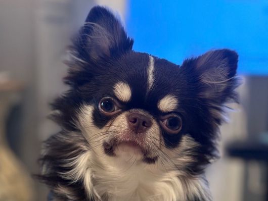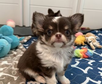 Little man is so handsome!!! He is a long hair chocolate and tan chihuahua! I got him when he was a baby from Korea! He is small with a cute little muzzle! He is 7 lbs . Doesn’t bark! He is a very good natured little guy! Super sweet!