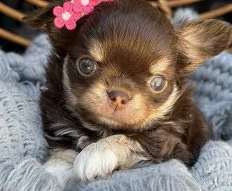 Our Chihuahua puppies have long coats. Coat types may vary depending on the parent dogs.
