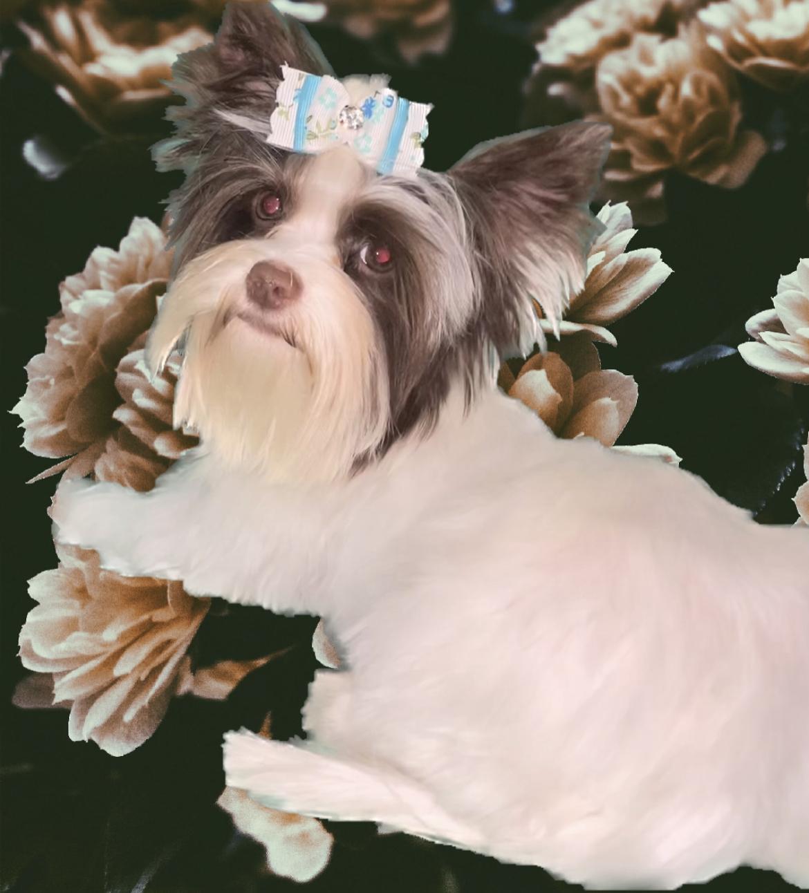 Natalina is a female Biewer Terrier. Carefully selected as a great representative of her breed, Gloria decided to make her part of their program. Gloria has passed Good Dog’s screening process, which involved a review of their breeding practices, environment, and the mental and physical health of their dogs.
