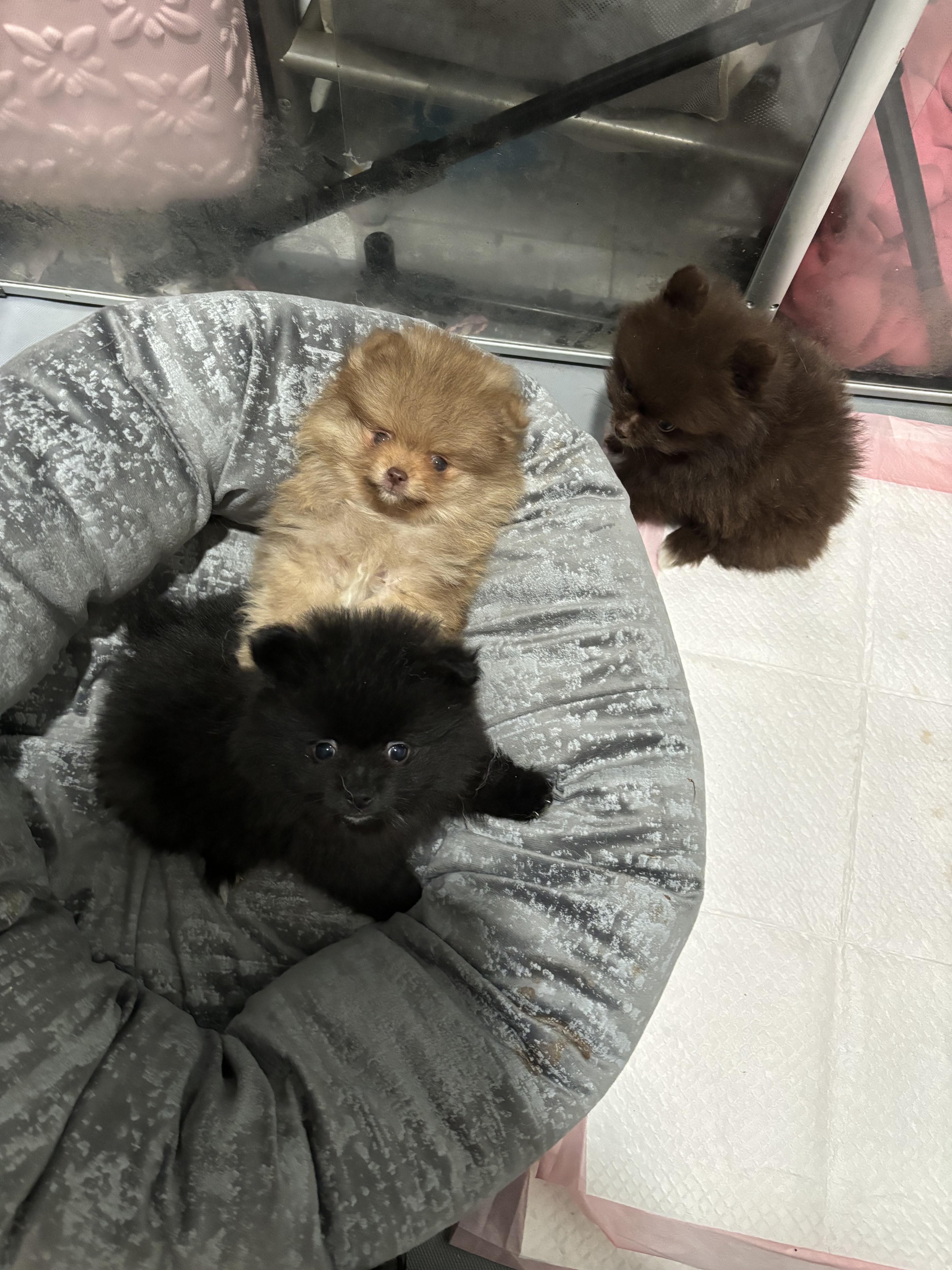 “The price includes the guarantee, AKC registration, or pet home also is available, first round of vaccination, deworming, and puppy socialization and a goody care bag 🫶. Price may very depend on Pom.”