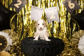 Mocha is an incredible 12lb Micro Sheepadoodle with a sweet, loving nature and a wonderful temperament. Friendly and affectionate, Mocha has an easygoing personality that makes every moment better.