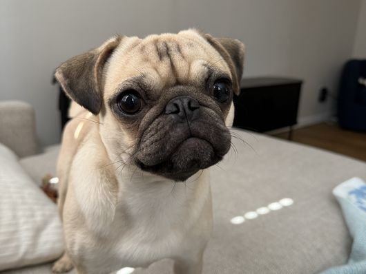 Ilise is an energetic and loving dog. She’s great with people, kids, dogs, cats, pretty much anything that walks this earth. She’s gentle and calm, unless she sees anything driving past our house. Pugs are an amazing addition to any family and add an insane amount of personality.