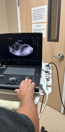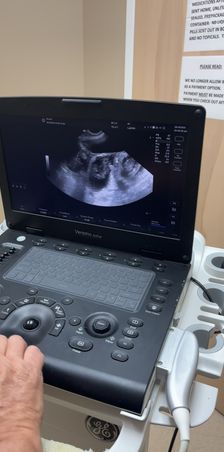 An ultrasound picture of just a few of the puppies at about 36 days of gestation! X-ray will get taken in a few days and we will get a for sure count of how many puppies she has!