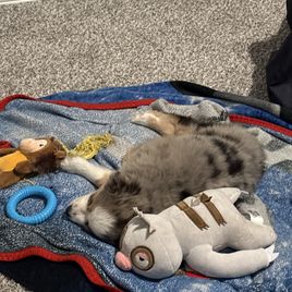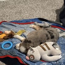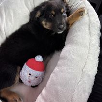Faith answered every question or concern promptly. She was very kind and thoughtful; she even sent our pup home with food to transition from and a toy that smells like his litter-mates. The puppy is stunning, energetic, and healthy. A happy boy! Thank you Faith for giving our boy Loki (Rider) a great start. He sits and lays down already. He also loves to snuggle, nap, and gets along with our cat. Couldn’t have asked for a better puppy.