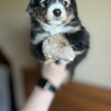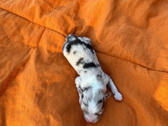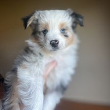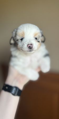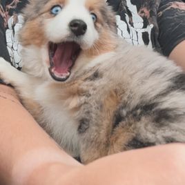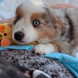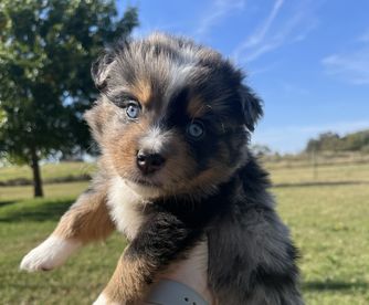 Toy Australian Shepherd puppies include black tri and blue merle. Colors will vary depending on the parent dogs.