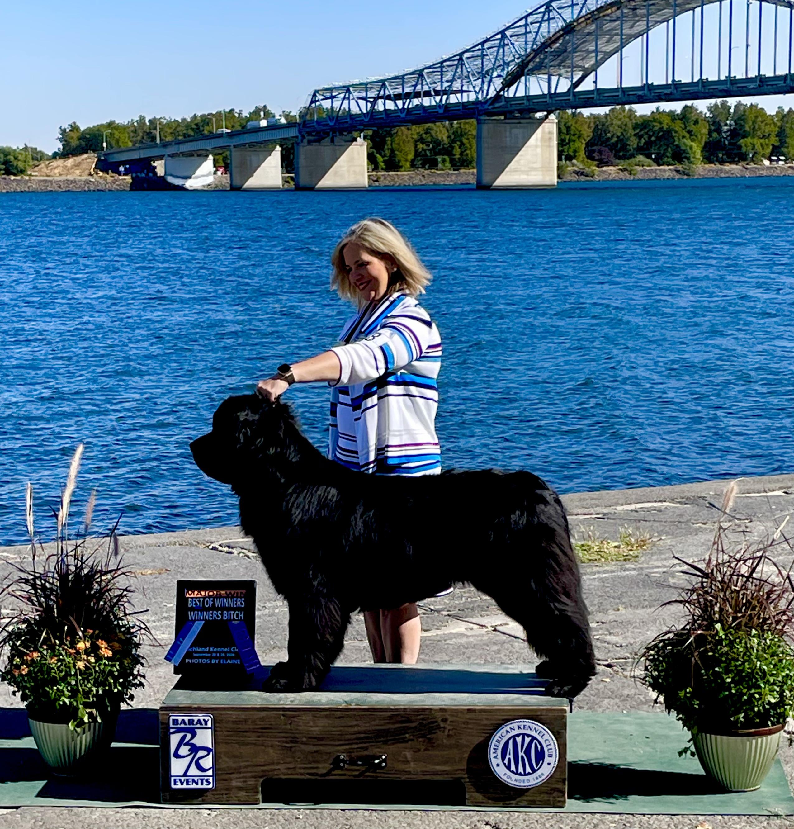 Wesley is an AKC Grand Champion, attended the 2022 Westminster, Titled Therapy Dog, CGC Titled, Trick Dog Advanced loving Newfoundland.