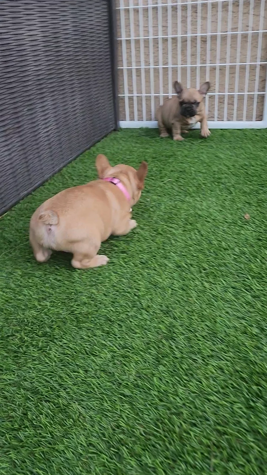 Grizzly is super sweet and playful with a short and stocky build. He's a chubby little teddy bear running around. He's a chocolate Fluffy frenchie with tan points and has been 6 panel health cleared. He carries blue, cream and Isabella.