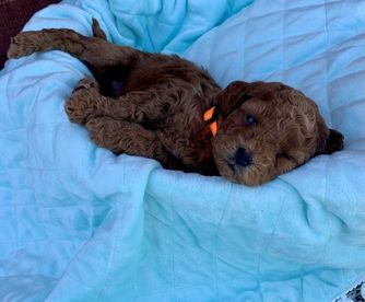 Our puppies include caramel red, red, and black. Colors will vary depending on the parent dogs.
