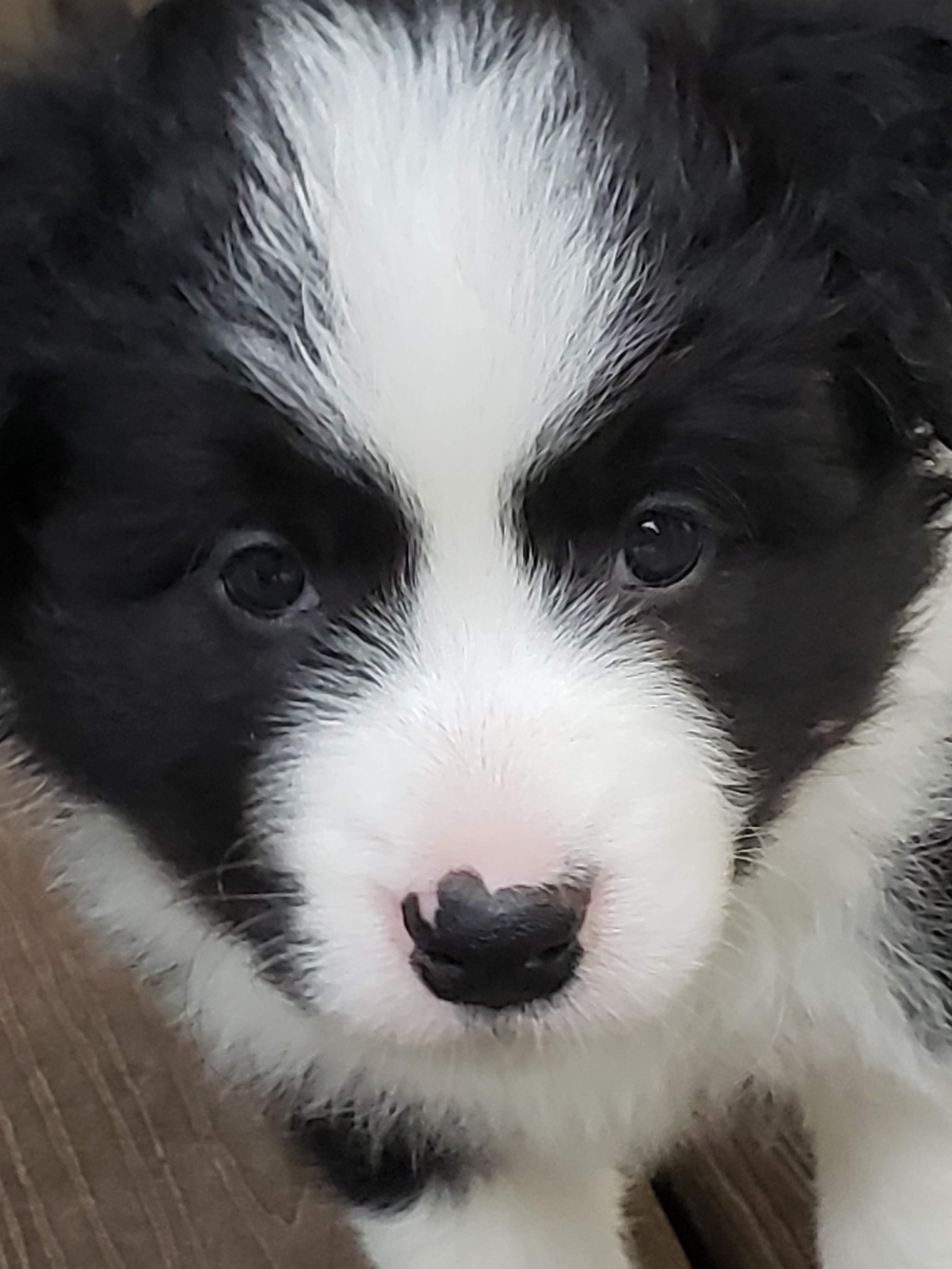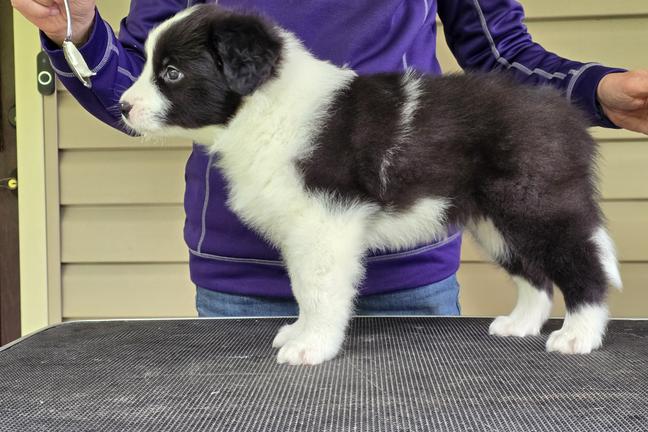 Our puppies are black and white. Colors will vary depending on the parent dogs.
