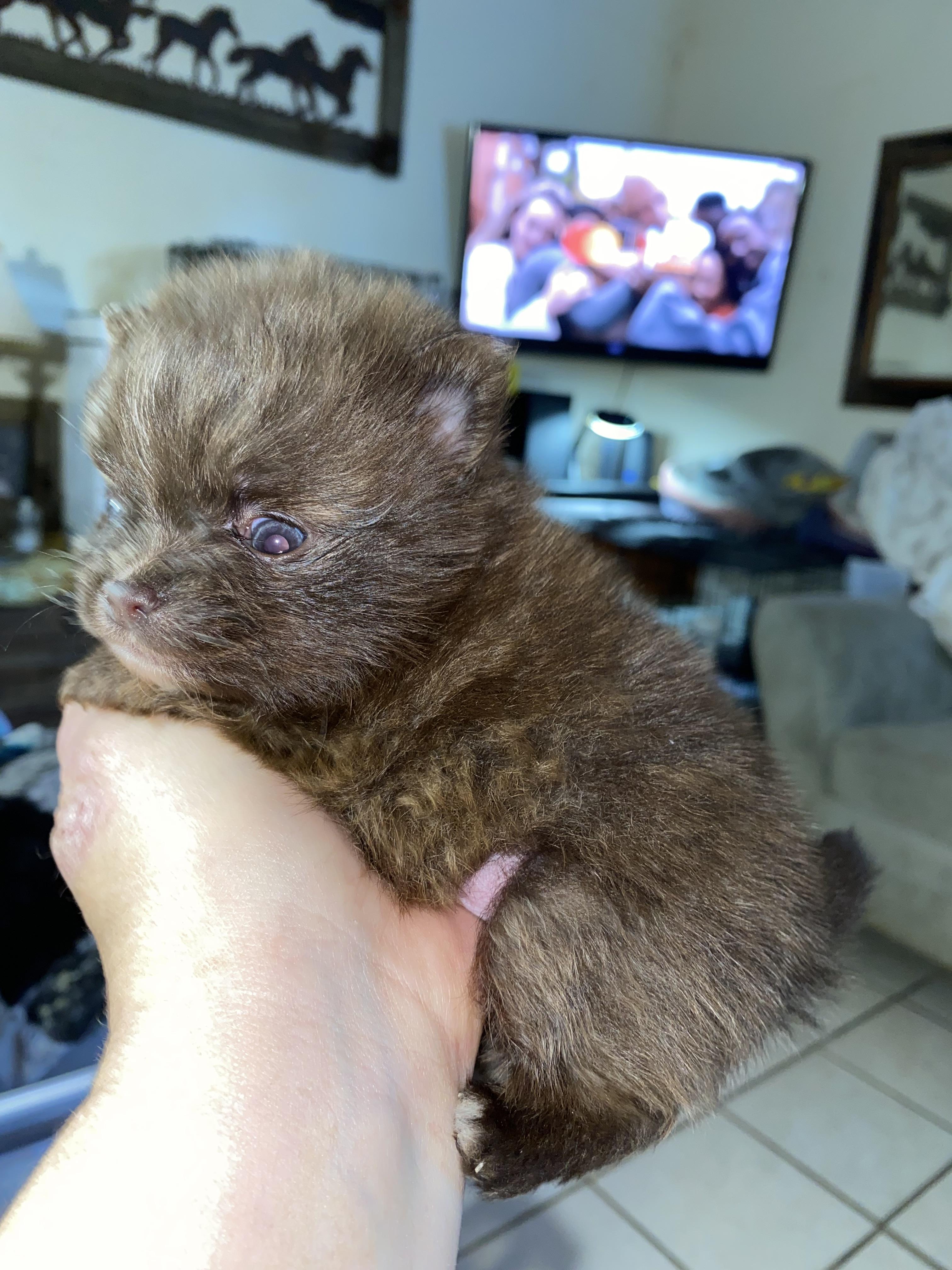 Louie is a Handsome Dark Chocolate and Tan Pomeranian. He is a happy and very loving companion! He is smart and always wants to please us. He loves to watch TV and to bark at the birds if they get on our patio area. Lol
