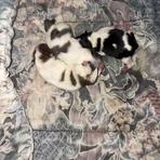 The boys are fluffed out now and have so much personality 💓 what an amazing trio of Parti Boys. Two are Merle with blue and green eyes and the Black Parti had gray eyes 👀