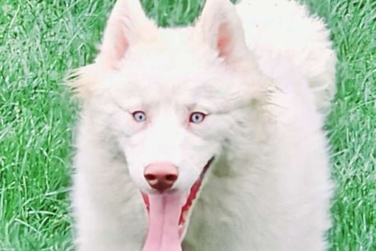 Indi is a solid white with big bkue eyes. She is a happy girl and loves attention. She is spunky and loves to play!