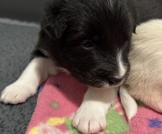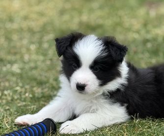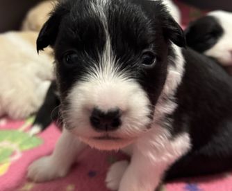 Our German Shepherd puppies have stock coats. Border Collie puppies have rough coats. Coat types may vary depending on the parent dogs.
