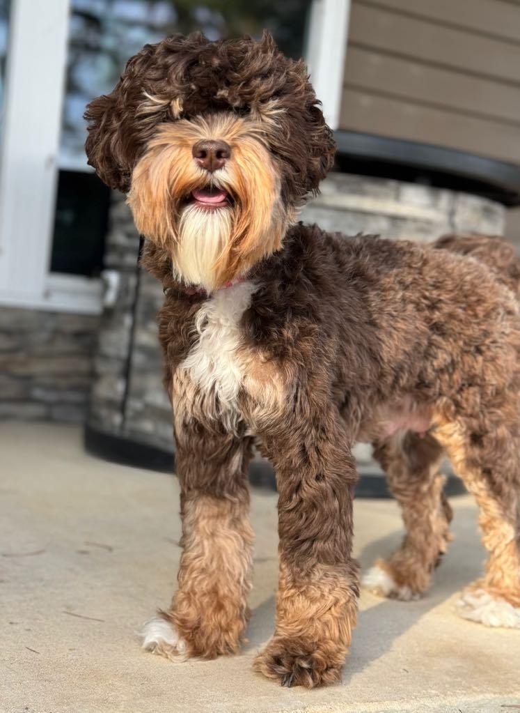 Pepper is a female Australian Labradoodle. Carefully selected as a great representative of her breed, Ashley decided to make her part of their program. Ashley has passed Good Dog’s screening process, which involved a review of their breeding practices, environment, and the mental and physical health of their dogs.