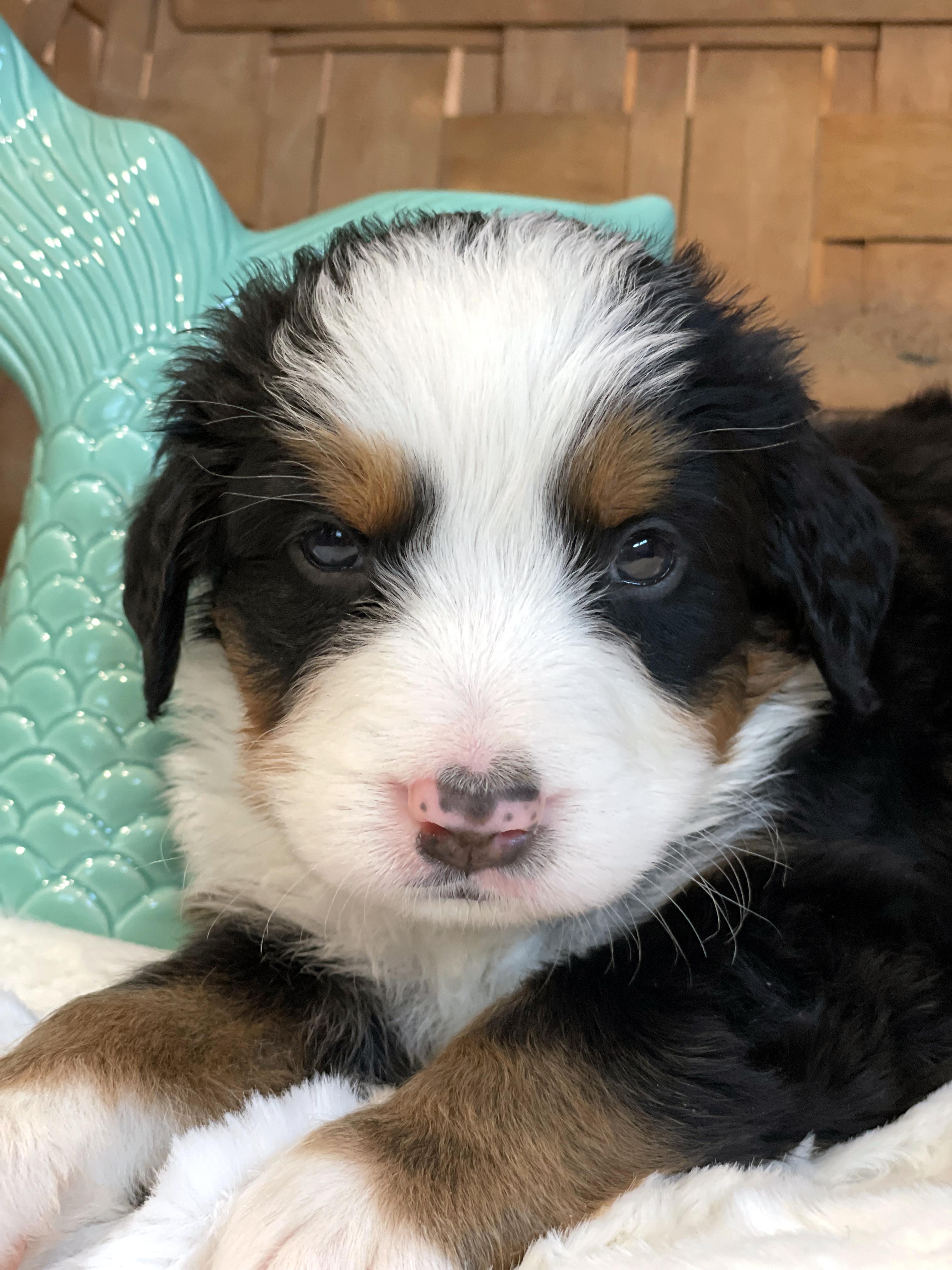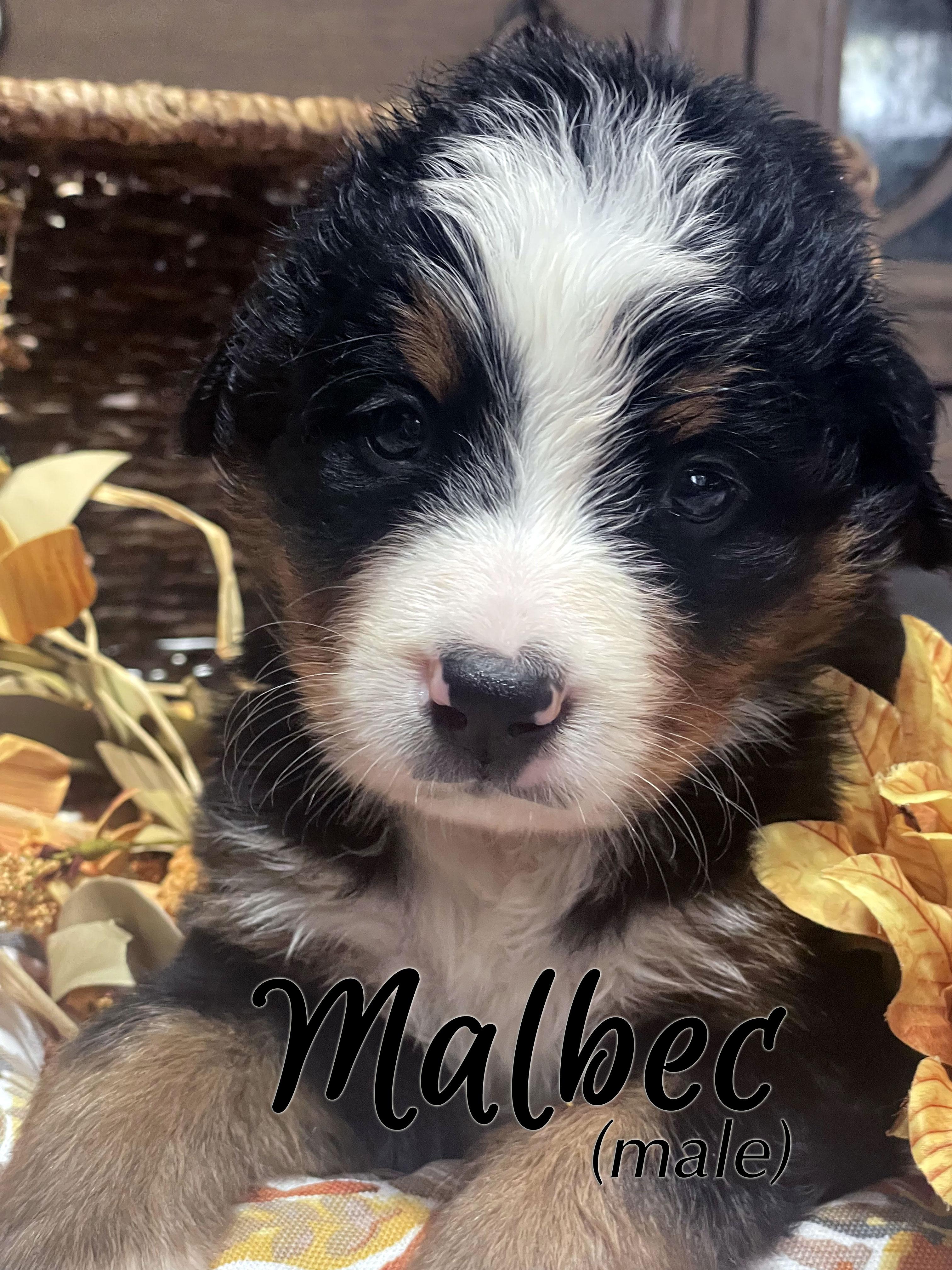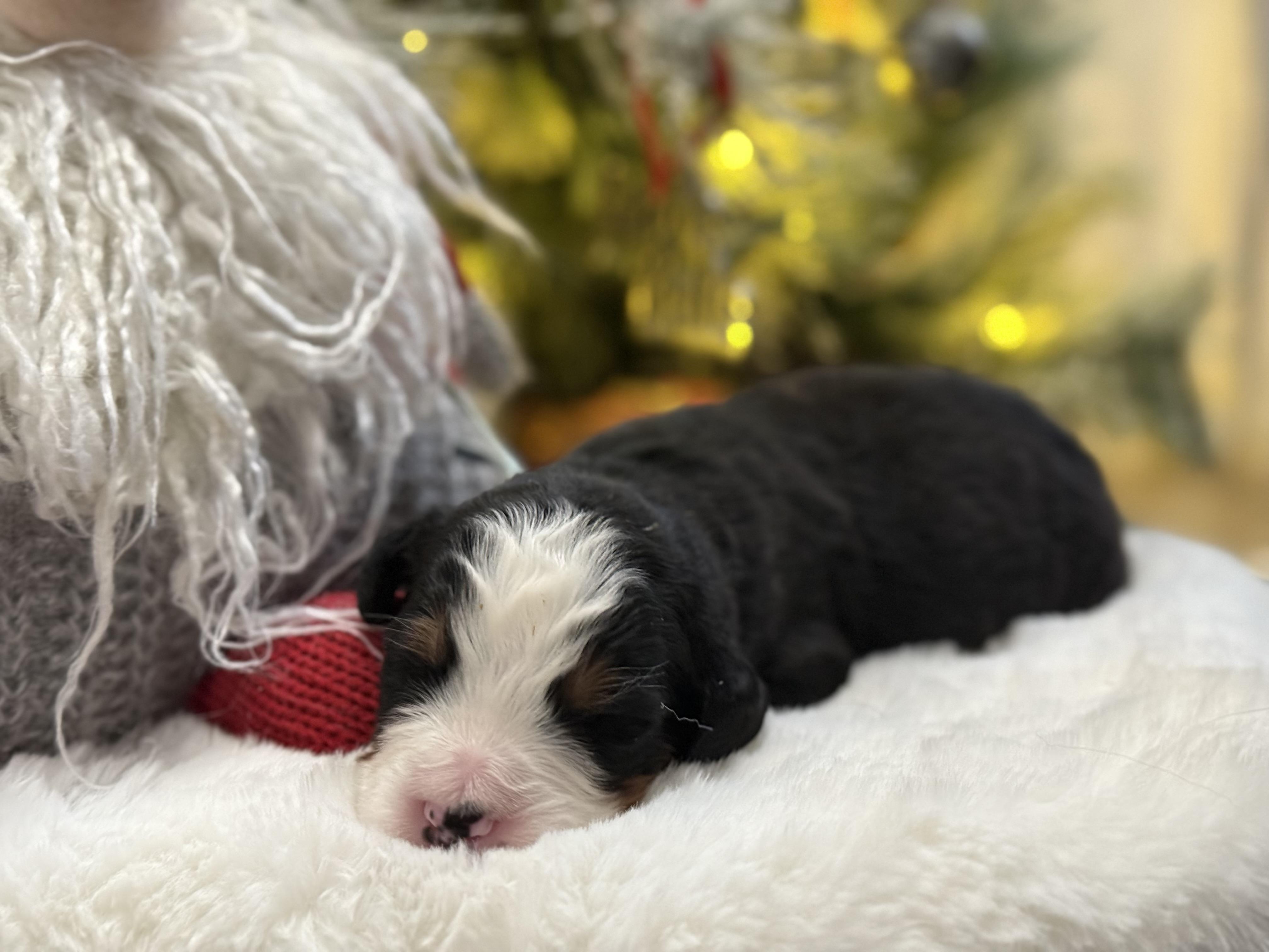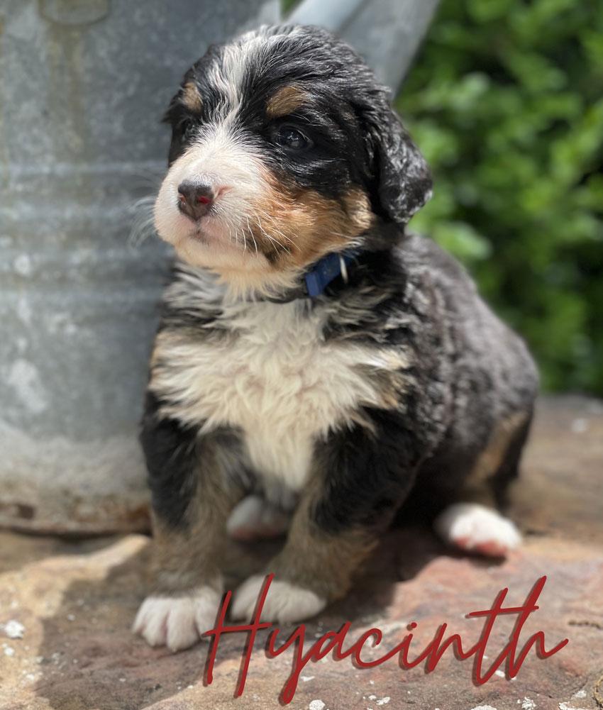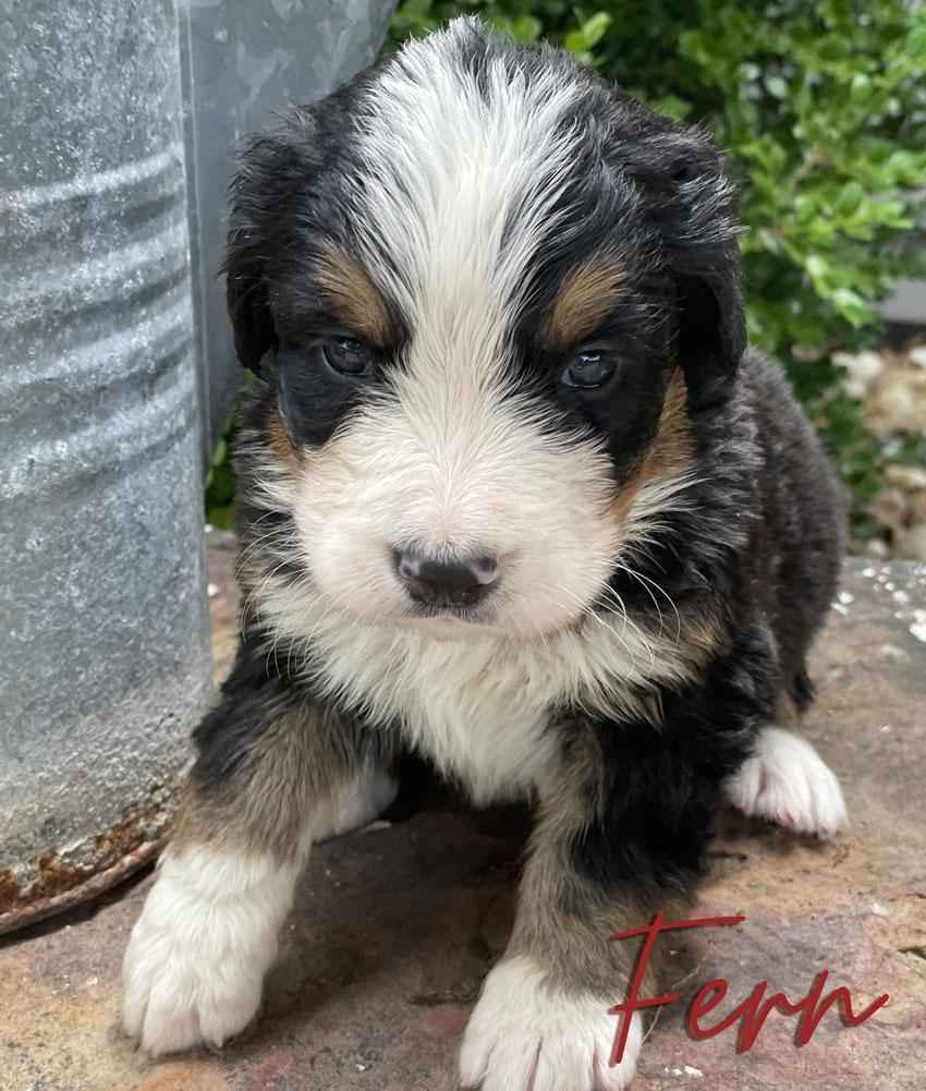 Apollo is an energetic, sweet boy and who loves to give hugs and is a definite head-turner. He weights around 100 lbs. and has the perfect markings of a champion Berner. His OFA shows good hipjoint conformation and negative for dysplasia on elbows. He’s genetically clear of DM (SOD1 & SOD1B) and VWF. He’s a proven stud, having sired a litter of outstanding puppies for a breeding program in Texas. We’re excited to start using him for our future litters and can’t wait to see what remarkable pups he produces for Faith & Family Farm.