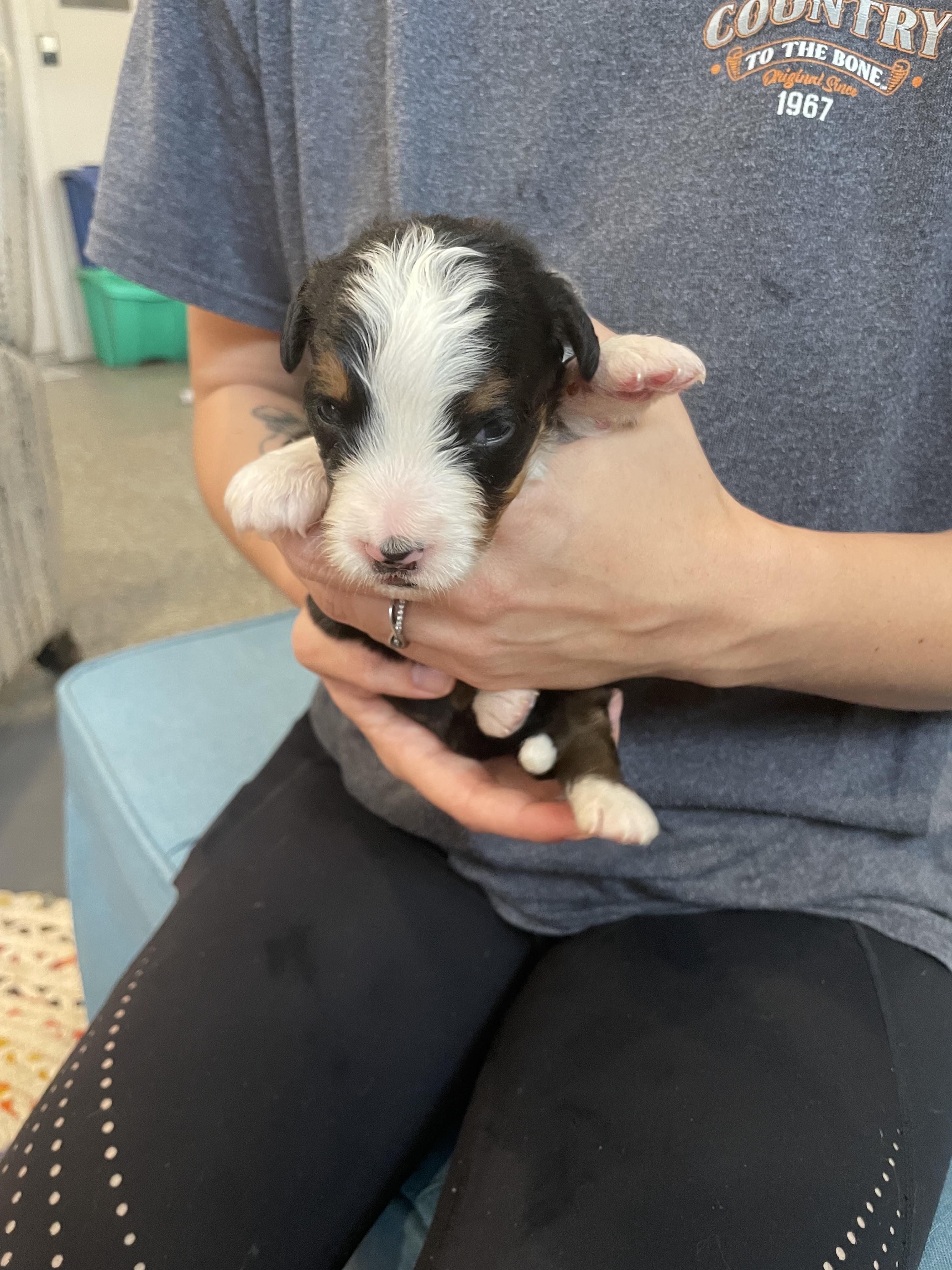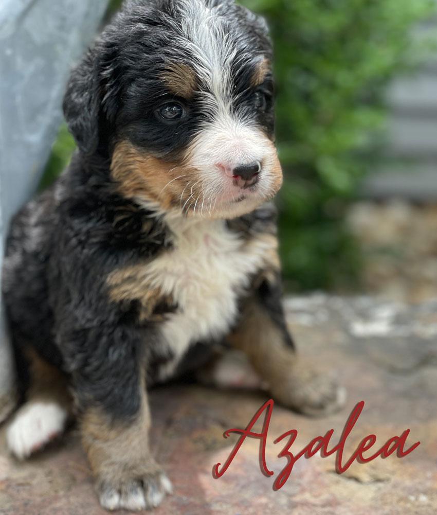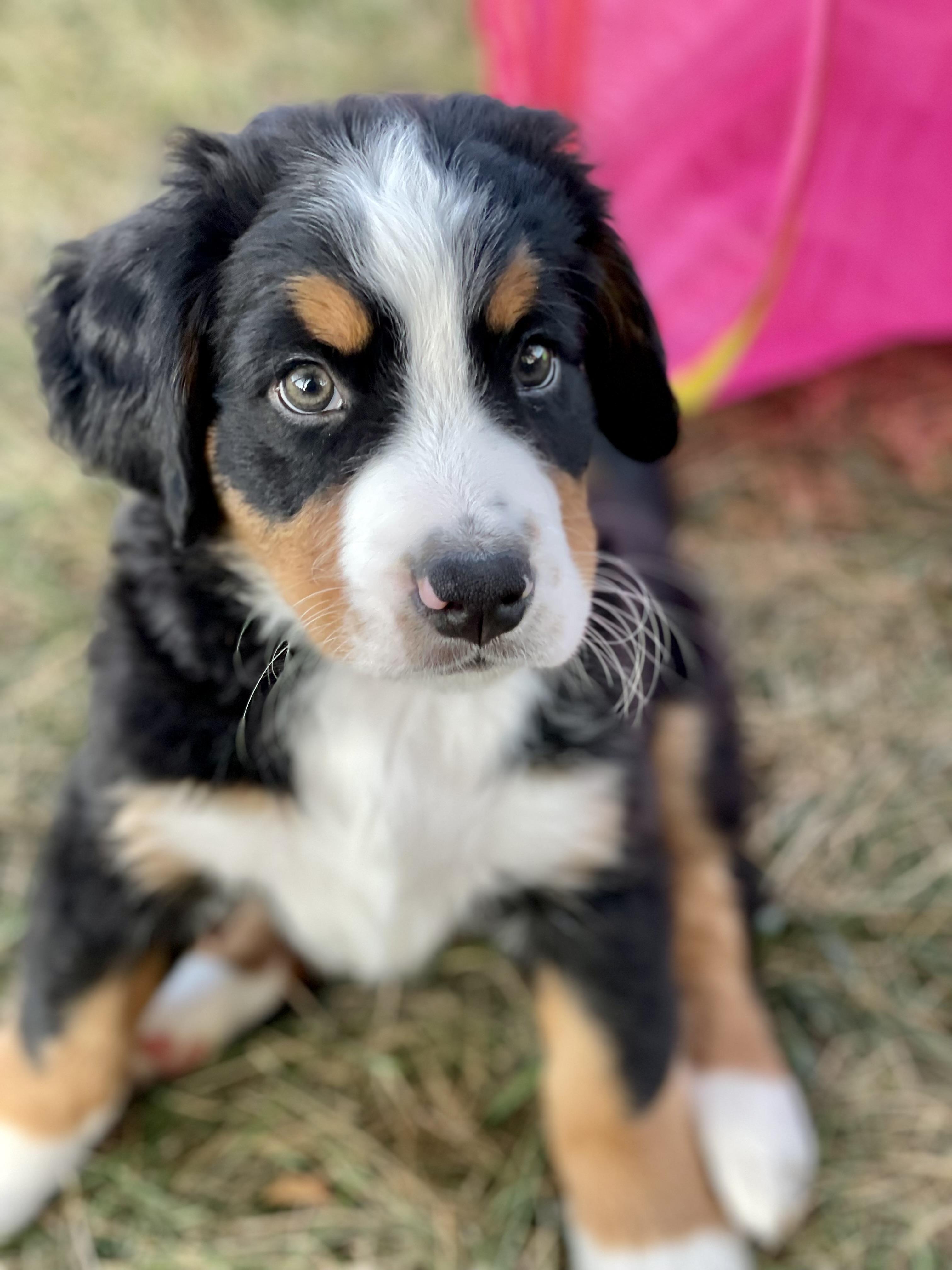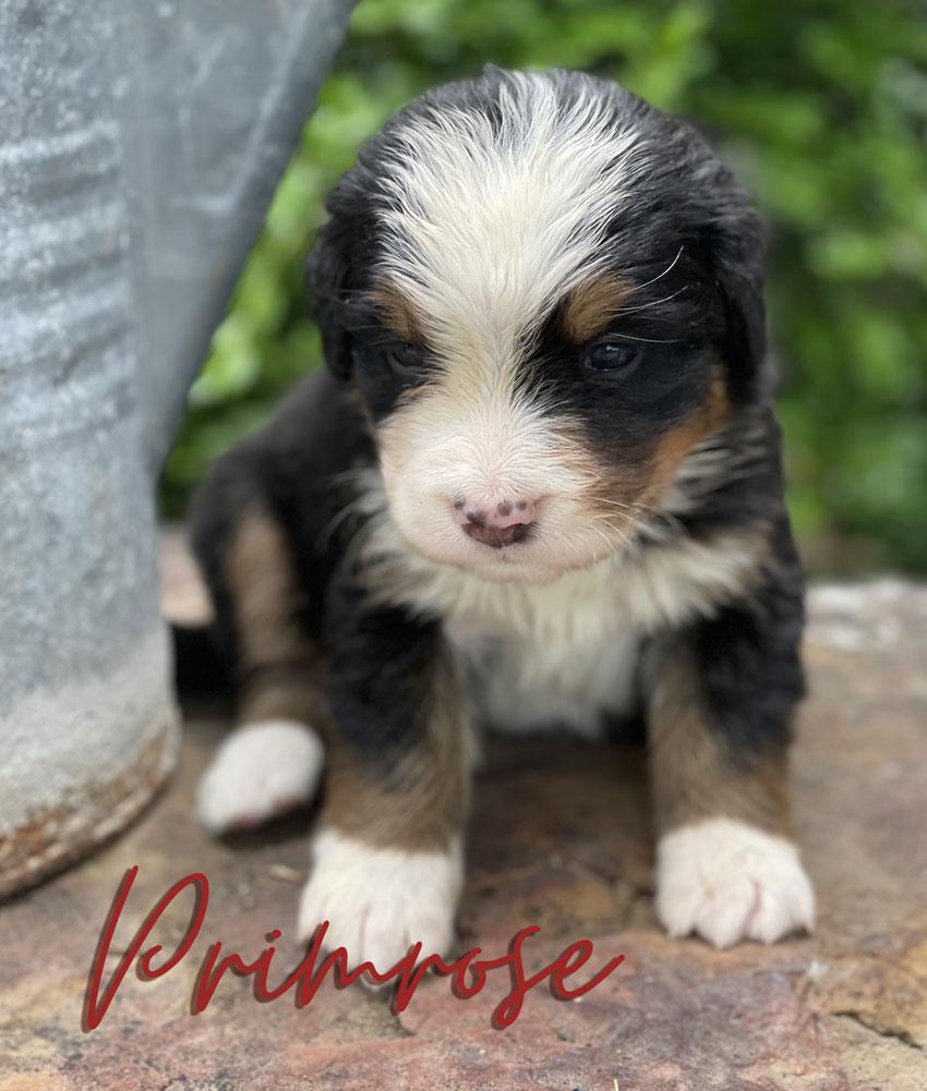 Canela is a sweet and slightly petite Bernese Mountain Dog. She's playful and energetic and will be a first-time mom on this breeding.