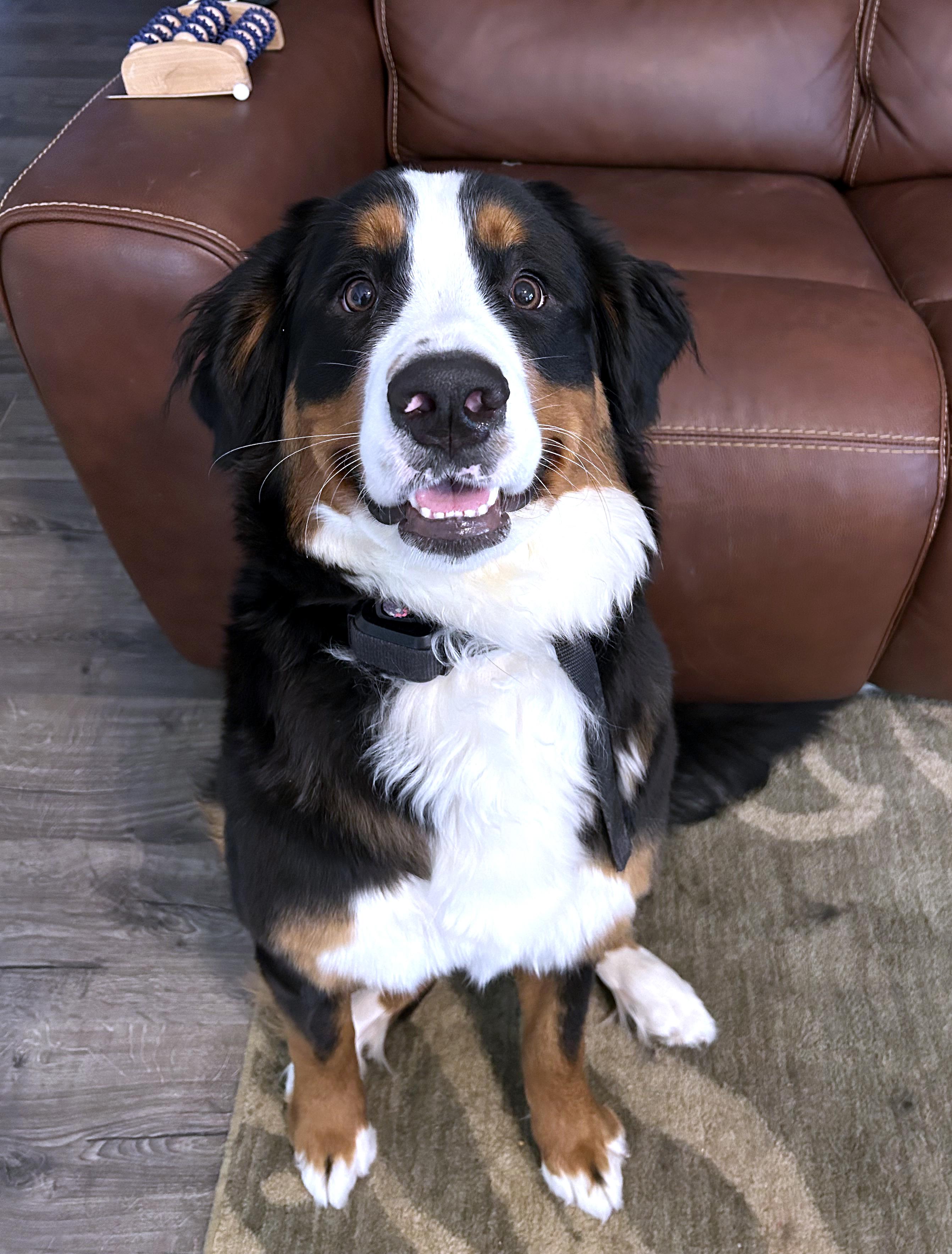 Grace is a female Bernese Mountain Dog. Carefully selected as a great representative of her breed, Jeff & Michelle decided to make her part of their program. Jeff & Michelle has passed Good Dog’s screening process, which involved a review of their breeding practices, environment, and the mental and physical health of their dogs.