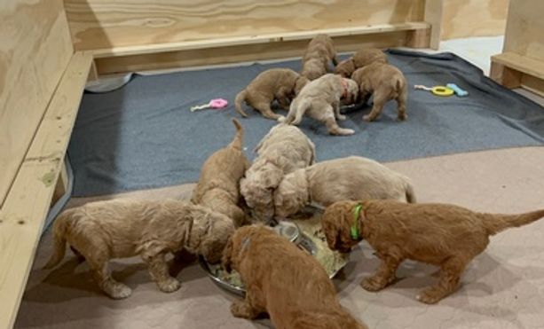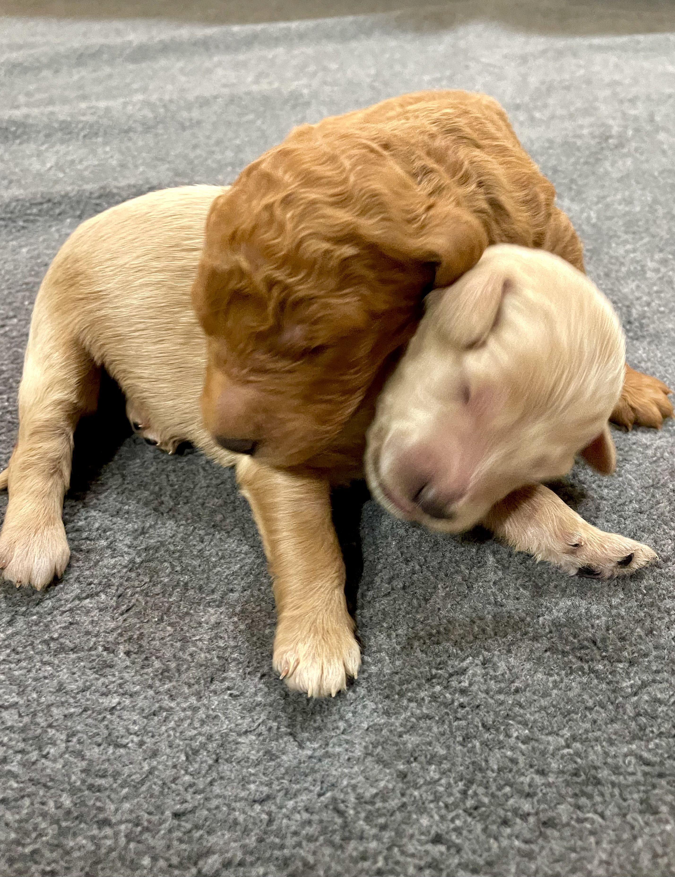 Our puppies include cream and red. Colors will vary depending on the parent dogs.