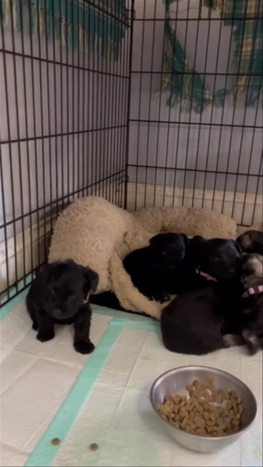 These little whiskers are four weeks old now. They are enjoying playing and wrestling with each other. We introduced puppy kibble this week.