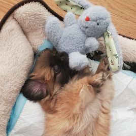 Ernest has been such a joy. He’s my sweet little wild child who never wants to leave my side. Very smart and happy-go-lucky. Recently had his first vet checkup and is growing beautifully (and loving on all the staff who didn’t want to put him down!). Faithful Companions made the whole process super easy. Jeb answered any and all questions, while providing updated photos. My family is already considering getting another Peke in the future and we’d definitely reach out to the Harvey family again. Thank you!