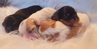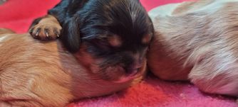 Our puppies include blenheim, ruby, black and tan, and tri-color. Colors will vary depending on the parent dogs.