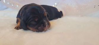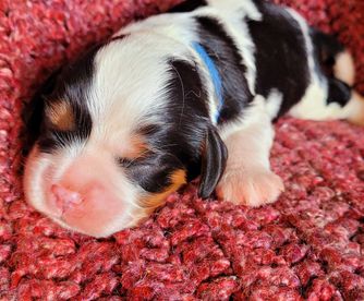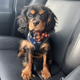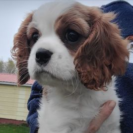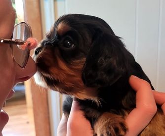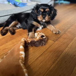 In July of 2022 my Fiancé and I brought home a beautiful black and tan Cavalier, named Finley, from Julie and couldn’t be happier with the whole process. From the start, she was knowledgeable, caring, and always took time to answer our questions. Julie would post photos and send updates on Facebook of the puppies and we loved watching Finley grow up over the first few weeks before he came home. It is clear she truly loves her dogs.