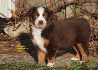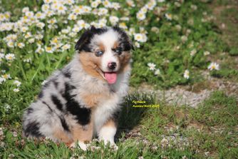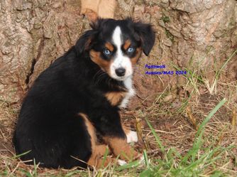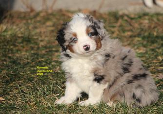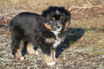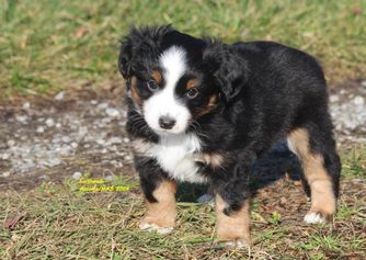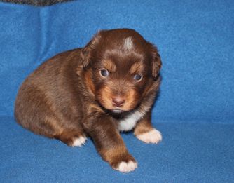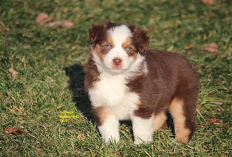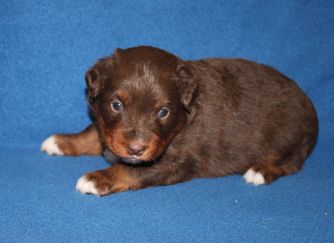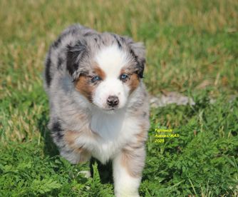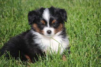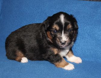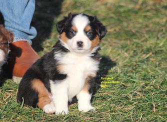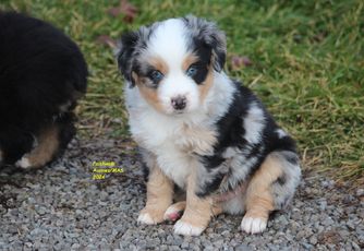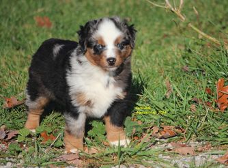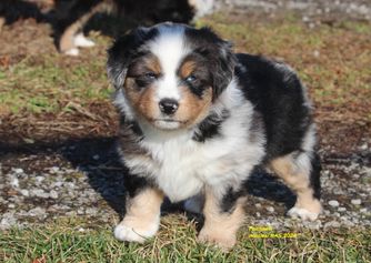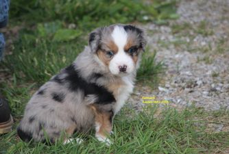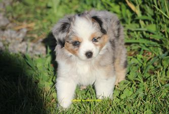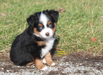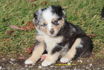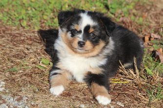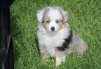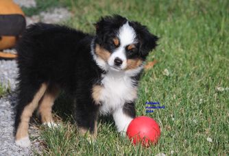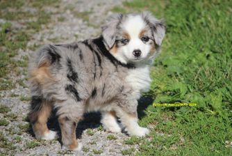 Our Miniature American Shepherd puppies include black, red merle, blue merle, and red. Miniature Australian Shepherd puppies include blue merle, black tri, red tri, and red merle. Colors will vary depending on the parent dogs.