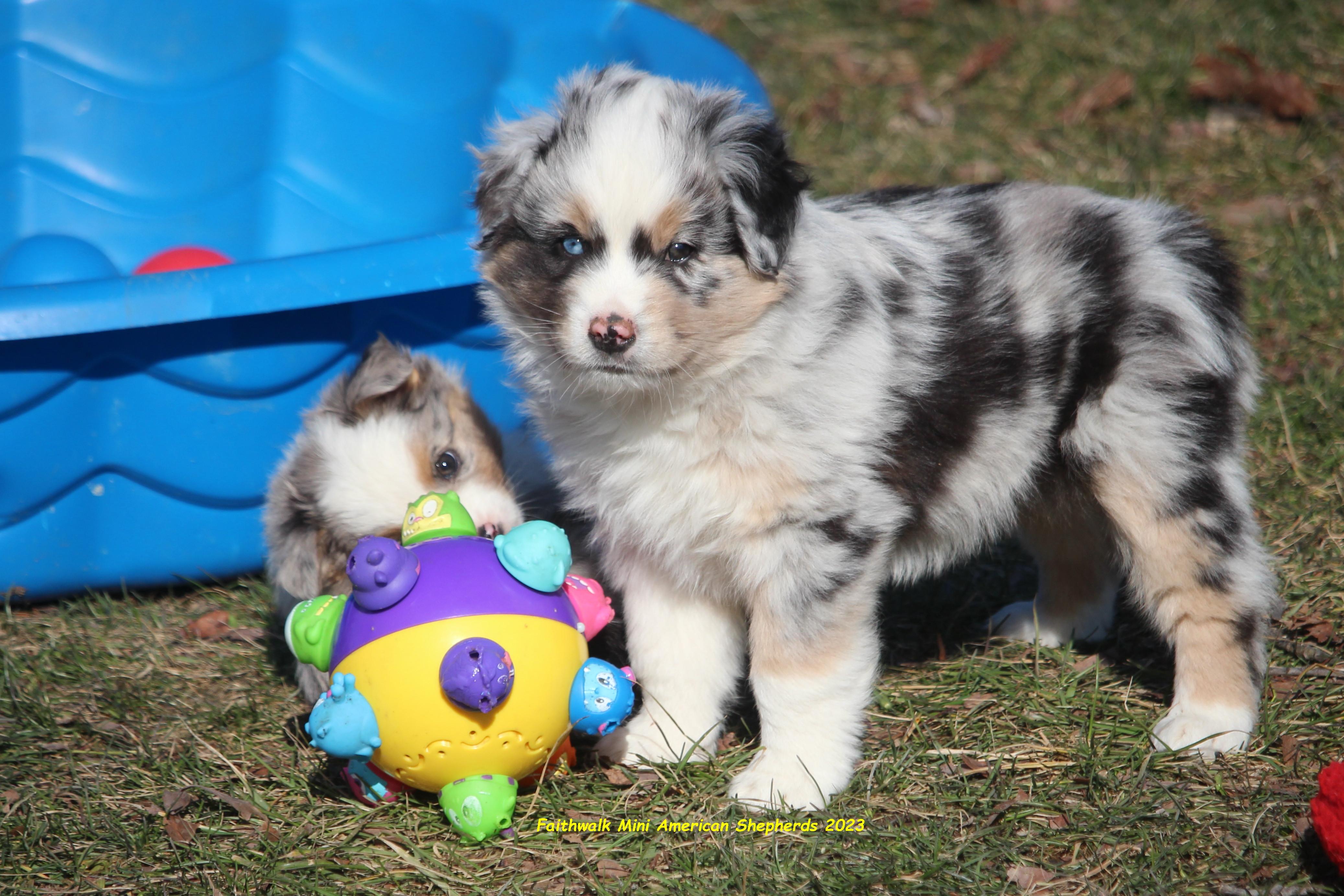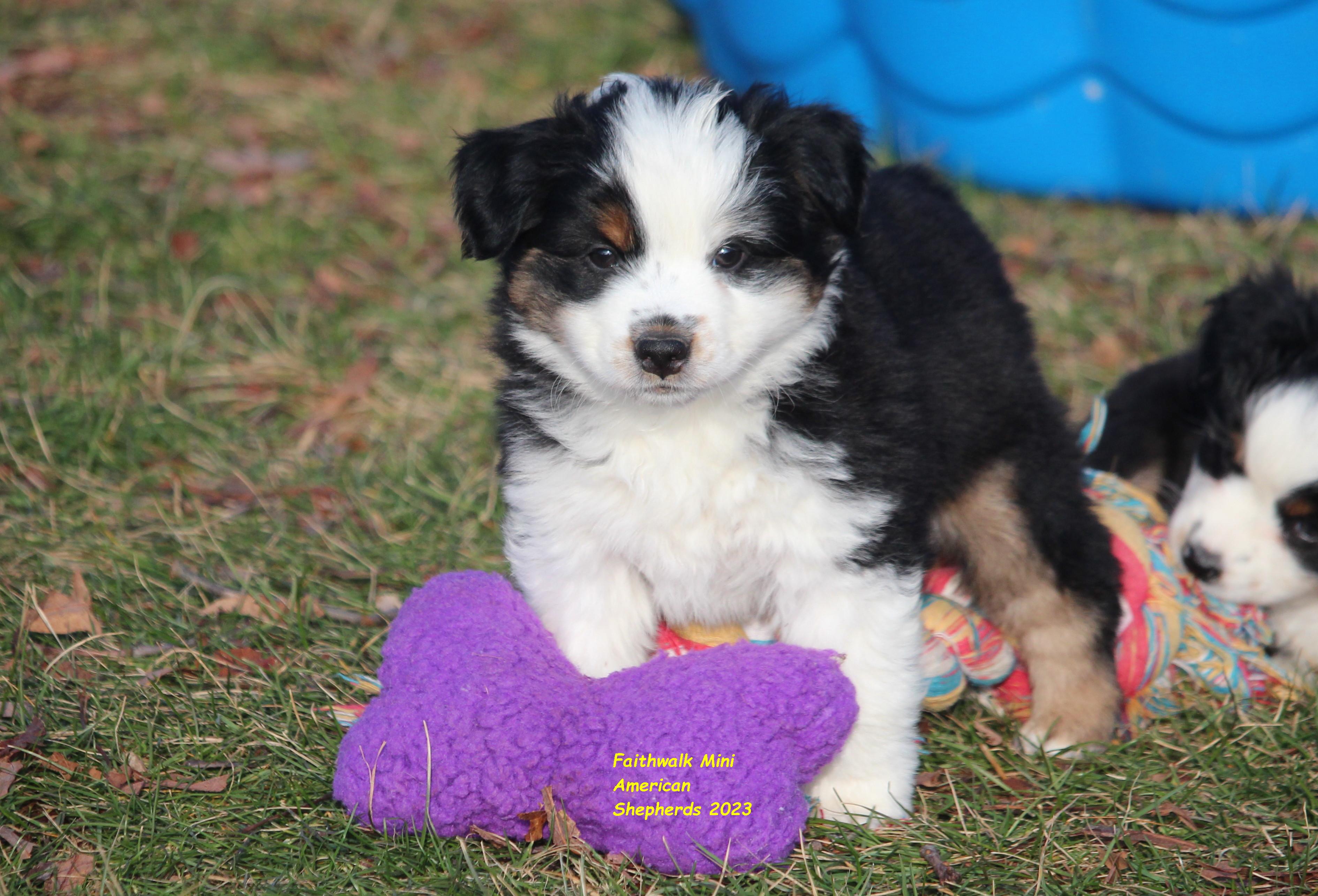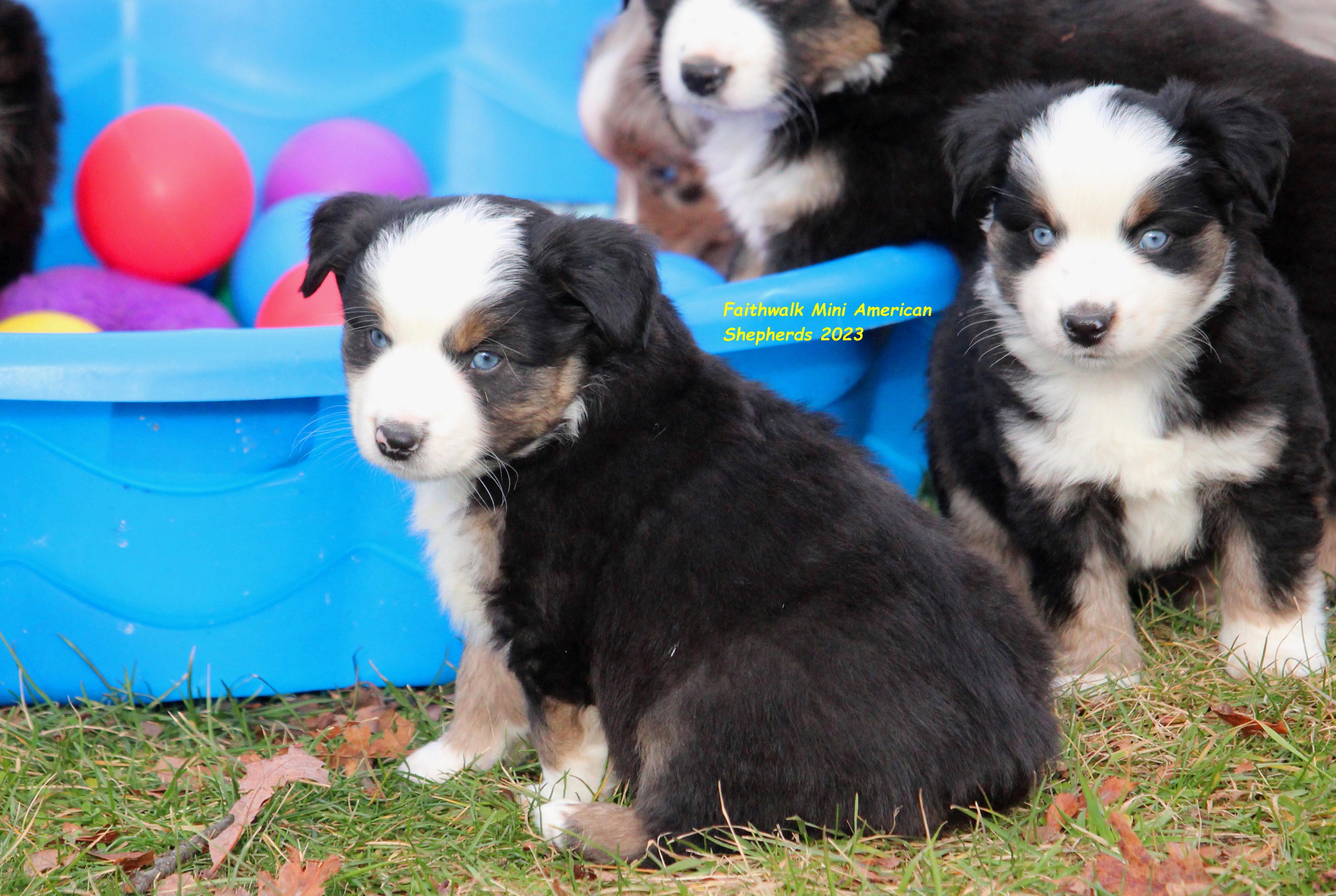Our Miniature Australian Shepherd puppies include blue merle, black tri, red tri, and red merle. Miniature American Shepherd puppies include black, red merle, blue merle, and red. Colors will vary depending on the parent dogs.