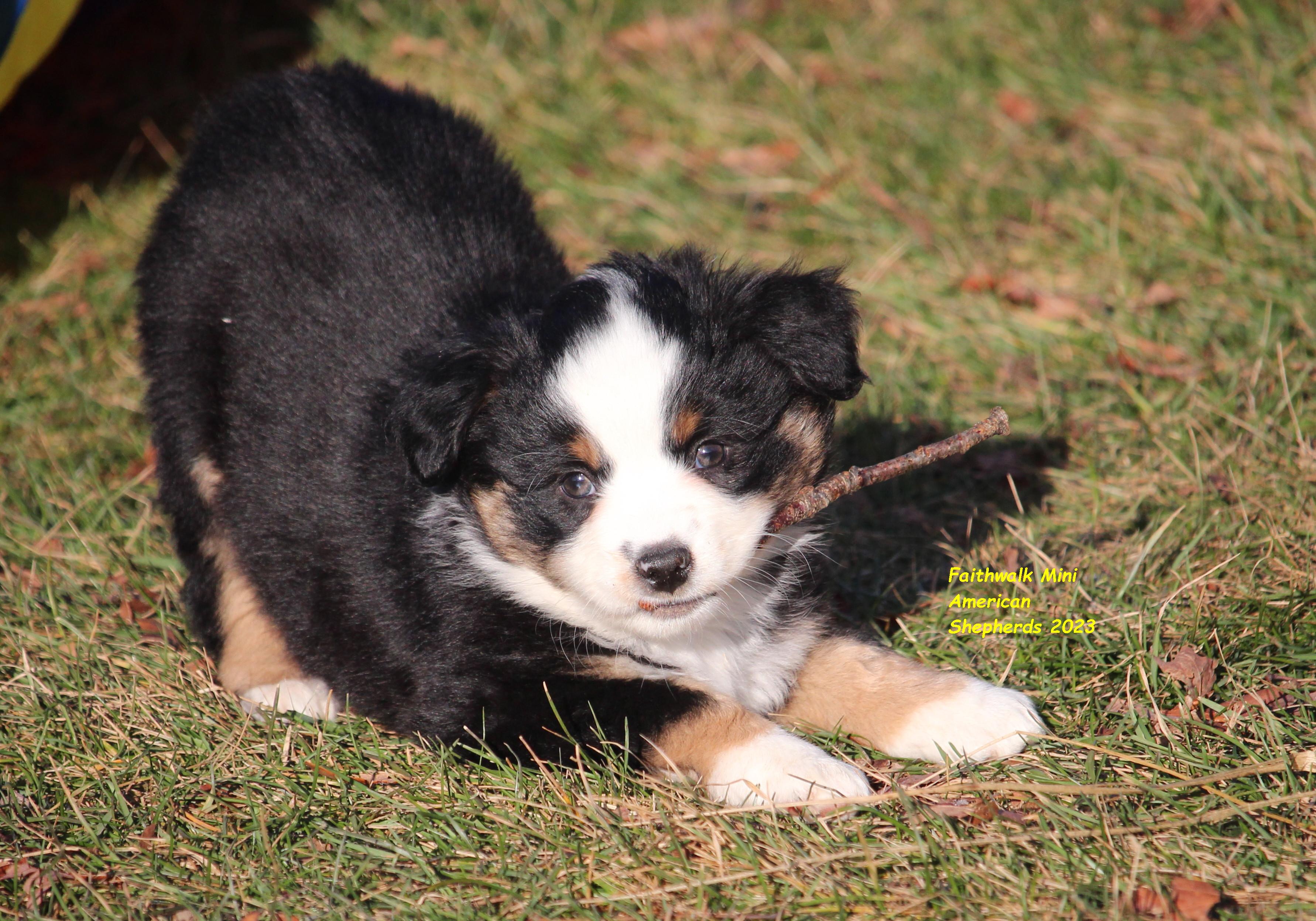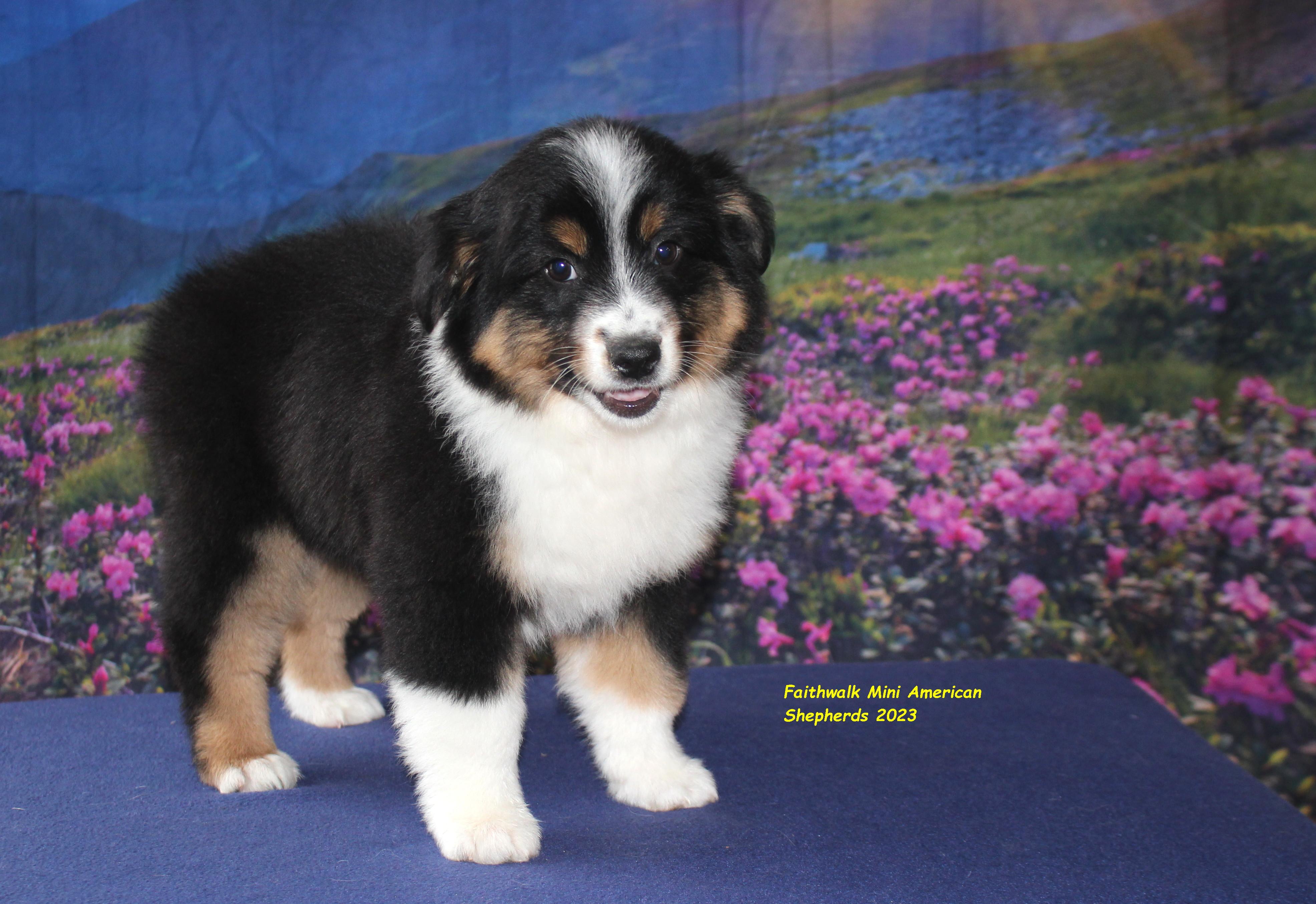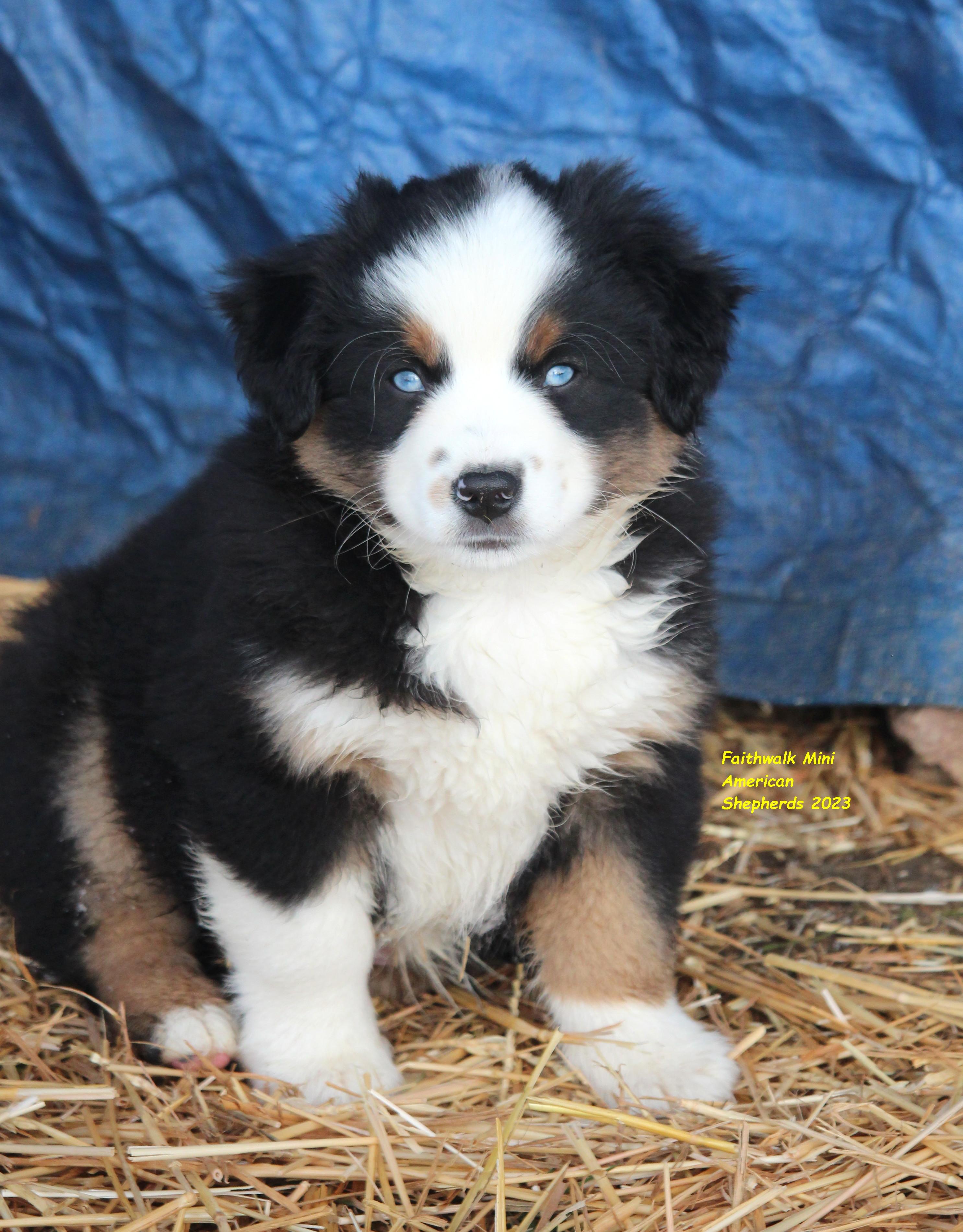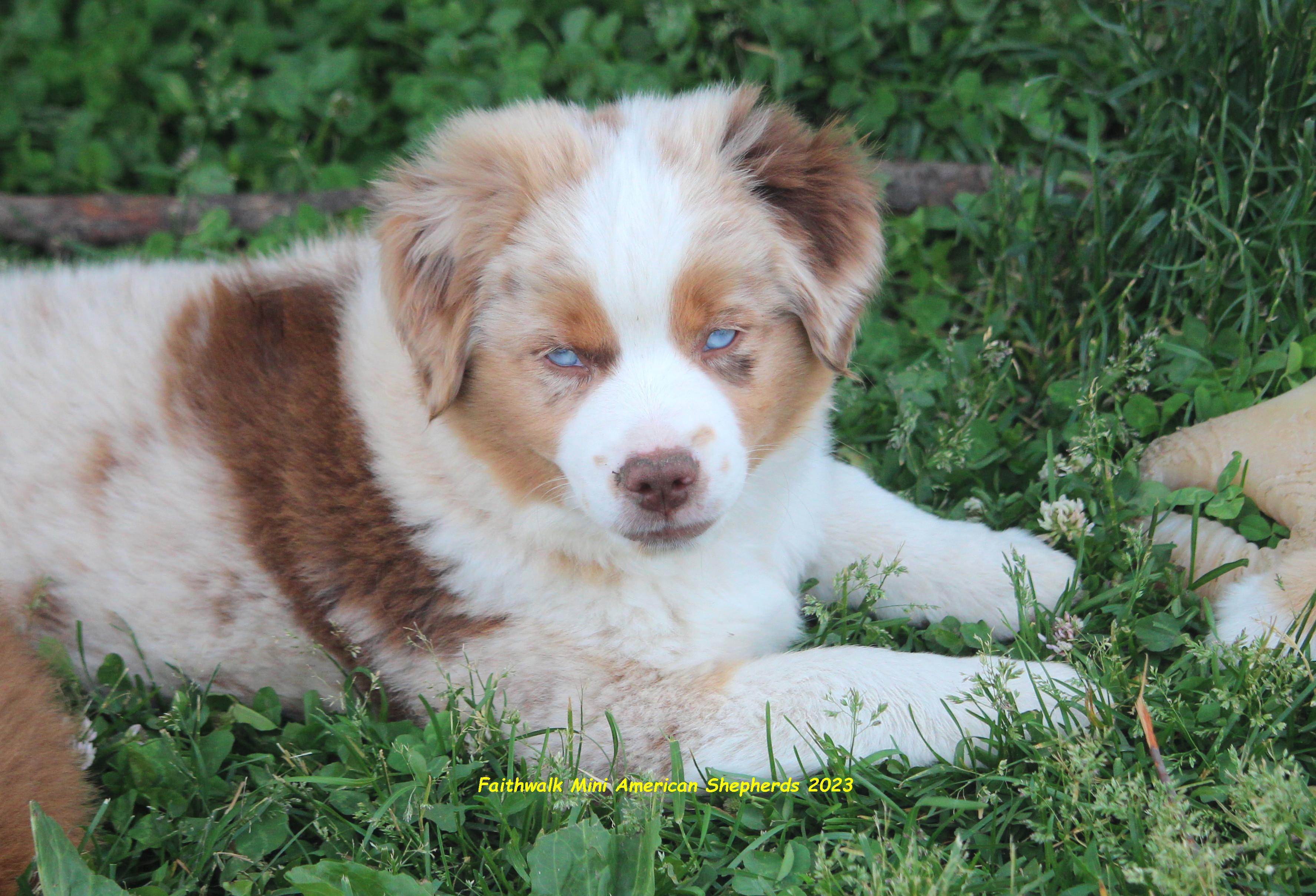 Our Miniature Australian Shepherd puppies include blue merle, black tri, red tri, and red merle. Miniature American Shepherd puppies include black, red merle, blue merle, and red. Colors will vary depending on the parent dogs.